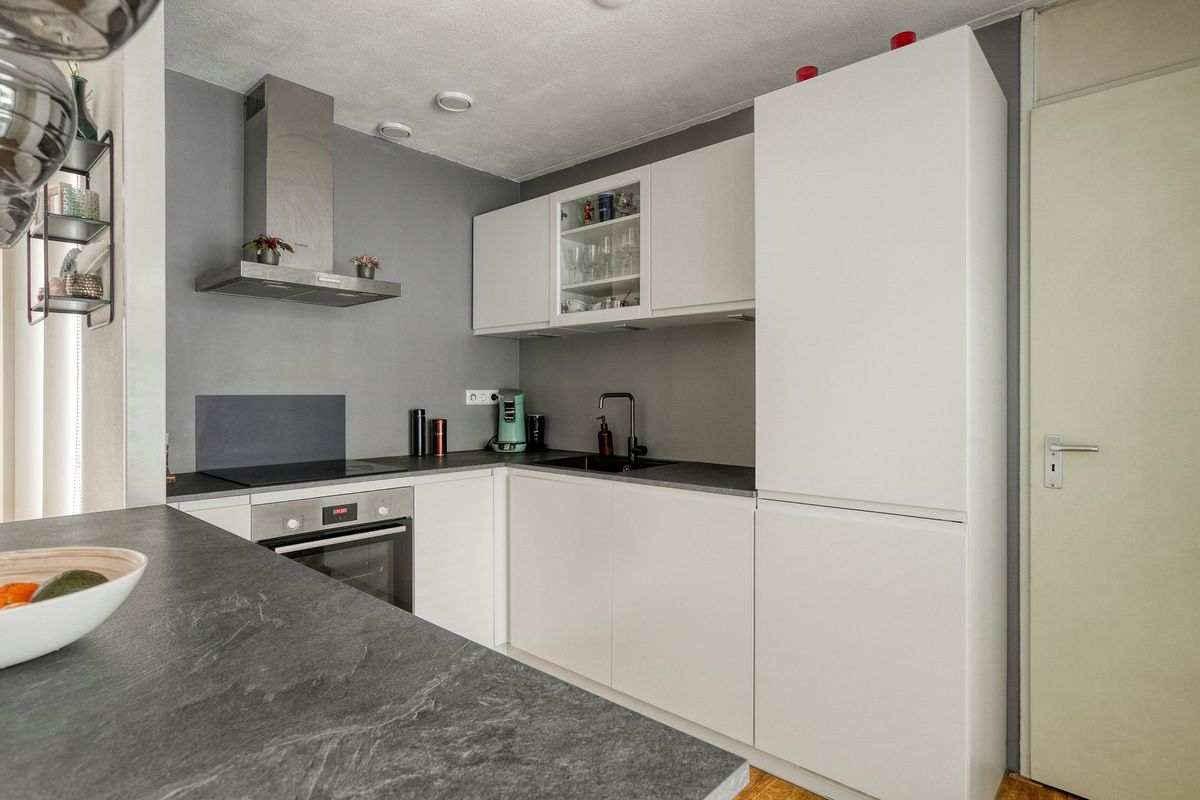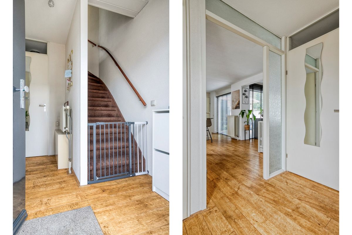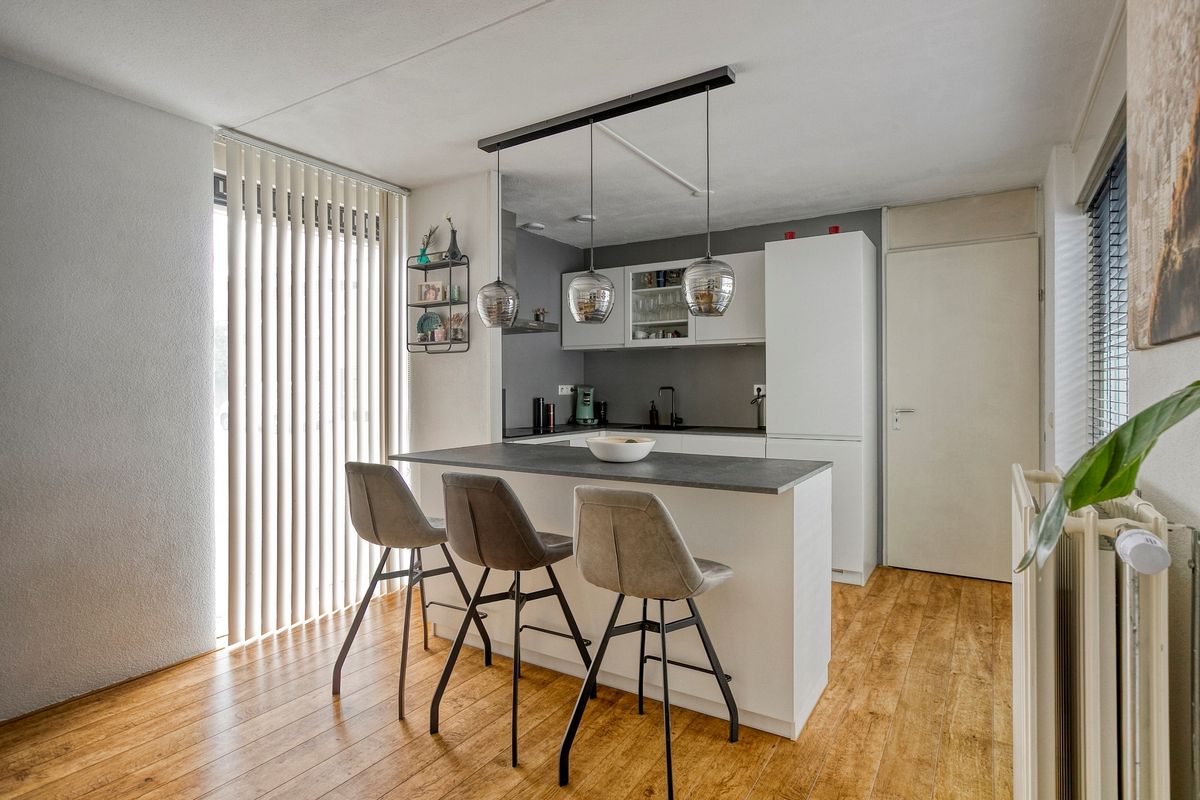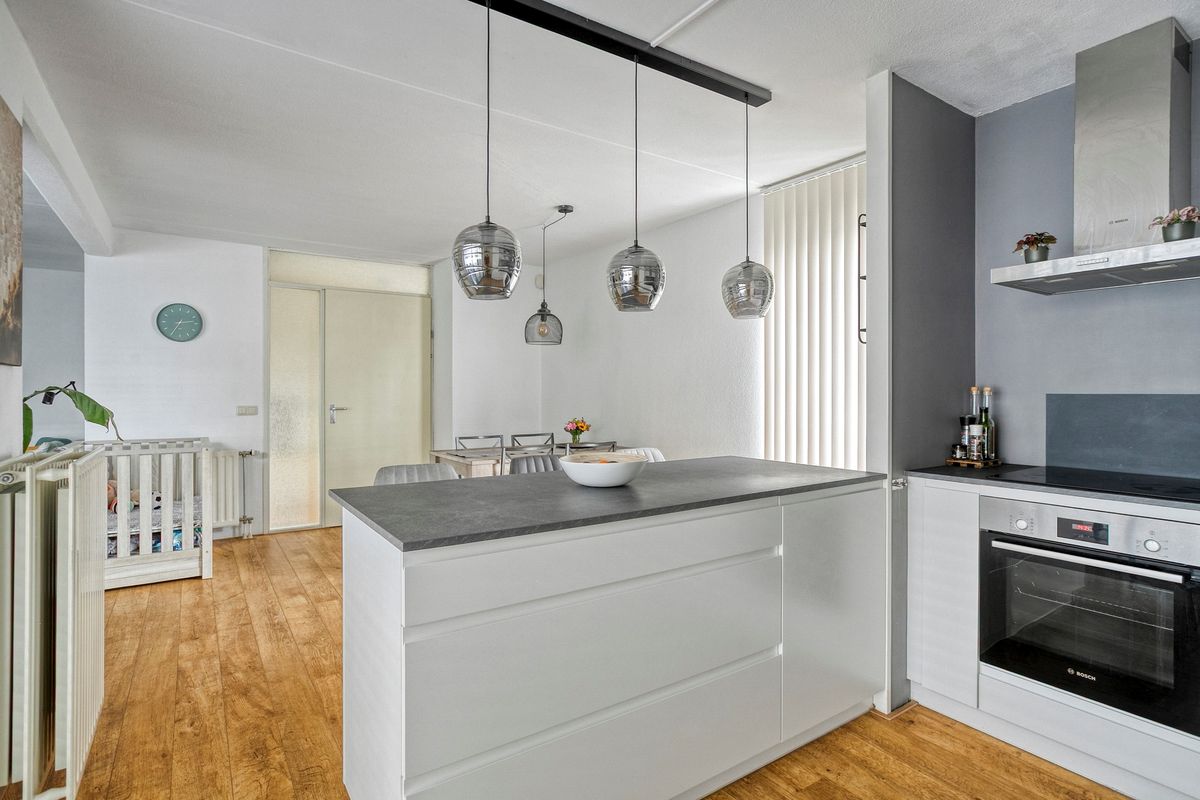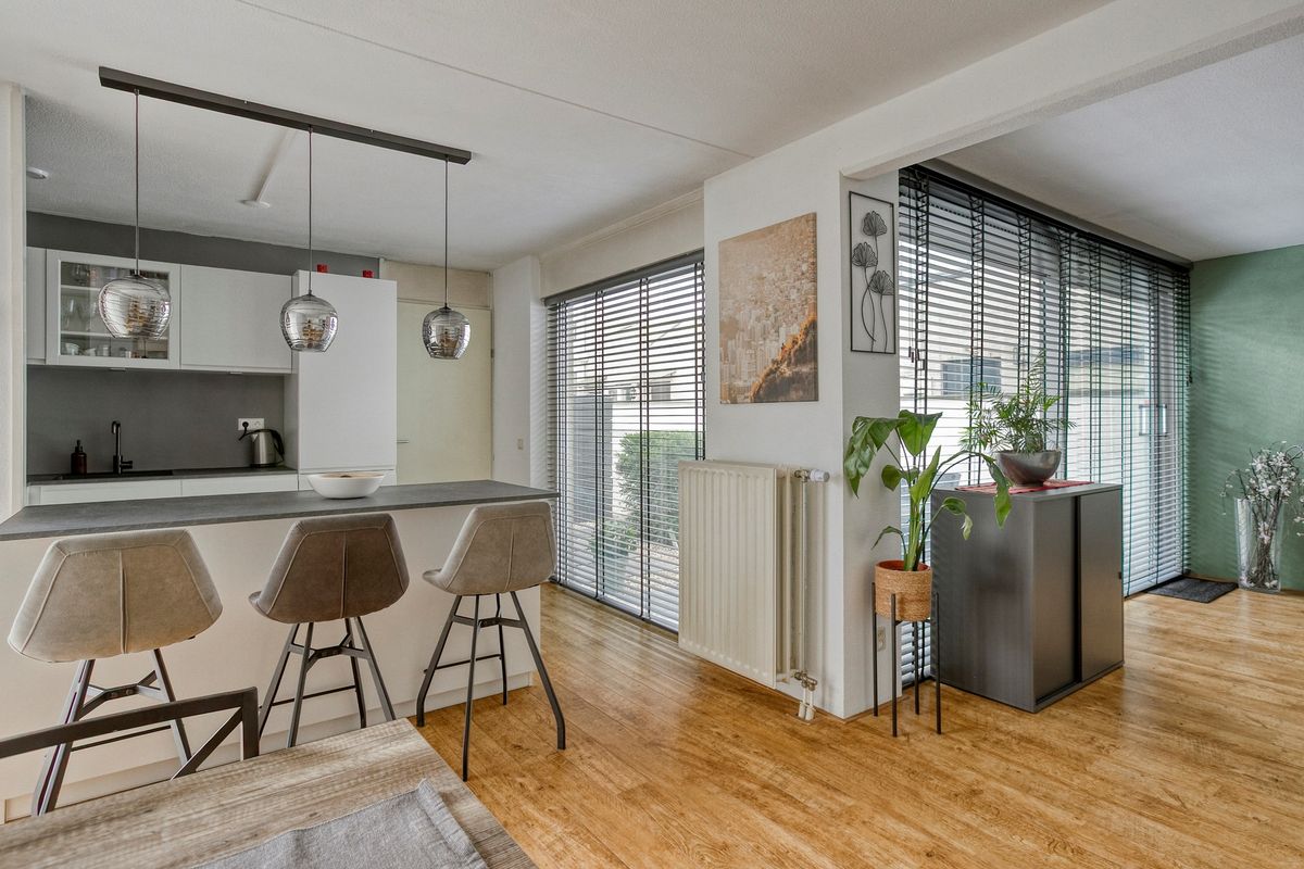 Via de entree kom je in de hal met meterkast, toilet, trapopgang naar de eerste verdieping en toegang tot de lichte woonkamer met open keuken. De keuken is in 2020 vernieuwd en voorzien van diverse inbouwapparatuur, zoals een vaatwasser, koelkast met vriezer, oven en een inductiekookplaat. Dankzij de grote ramen is er veel daglicht in de keuken, wat bovendien een mooi uitzicht op de tuin biedt.