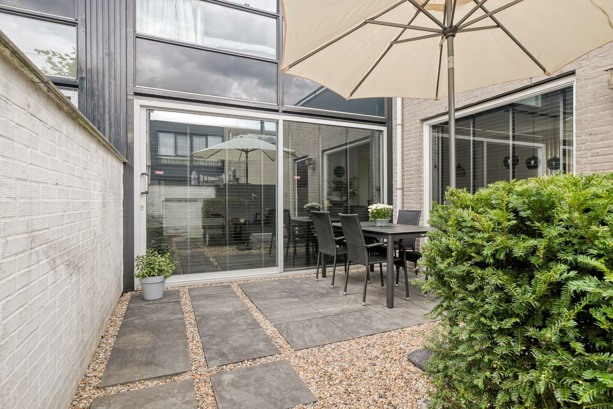 Achter de keuken bevindt zich de bijkeuken, met aansluitingen voor de wasmachine en droger. De ruime woonkamer is voorzien van een schuifpui, waardoor ook hier veel daglicht binnenkomt. Via deze schuifpui bereik je de netjes aangelegde tuin, die in 2020 grondig is aangepakt.
