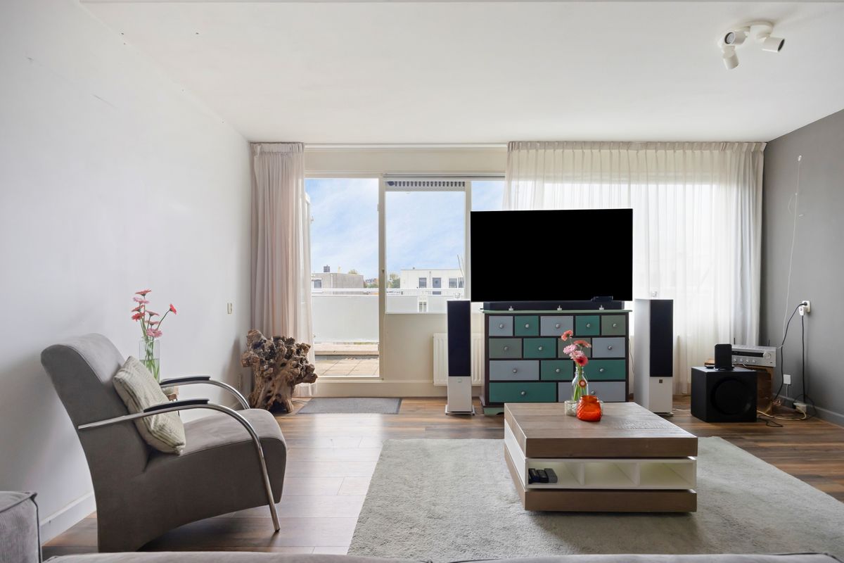 Ruime, lichte woonkamer met grote raampartijen, laminaatvloer en toegang tot het zonnige balkon op het verlaten. De halfopen, in U-vorm opgestelde keuken is modern uitgevoerd (2016) en voorzien van inbouwapparatuur zoals een koel-/vriescombinatie, combi-oven, inductiekookplaat en vaatwasser.