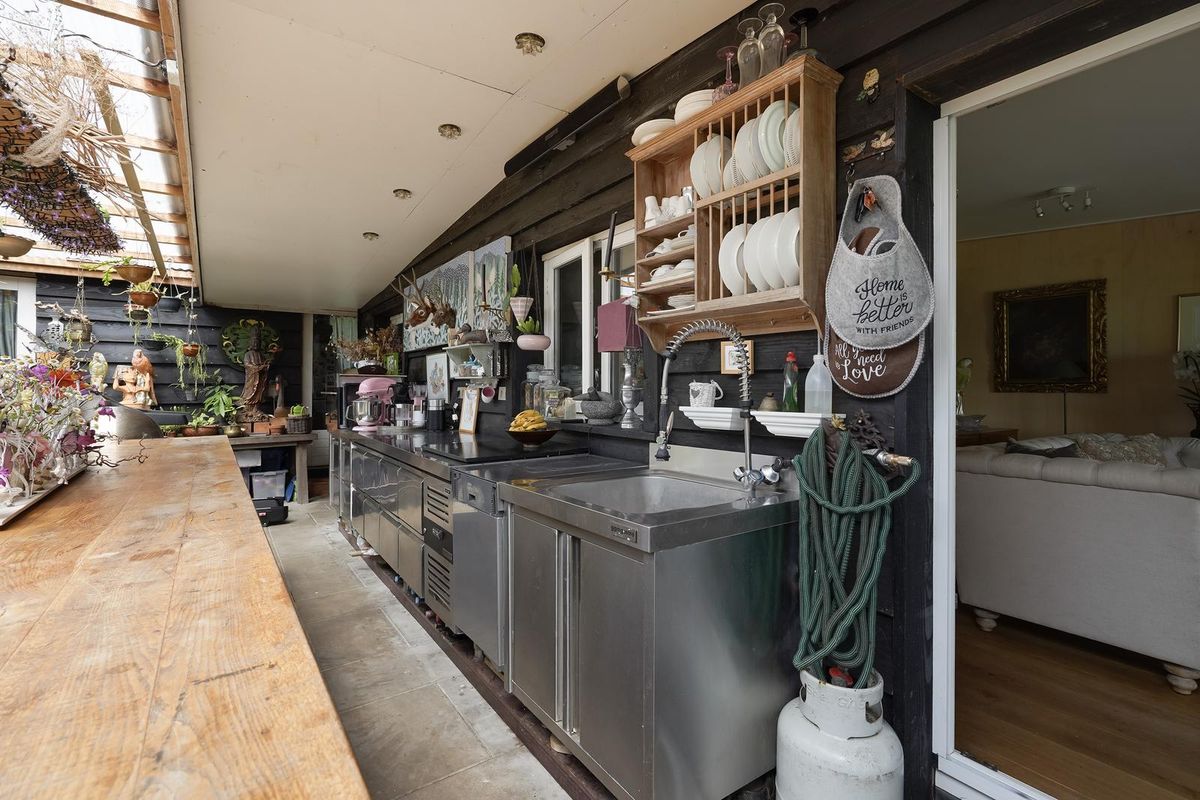 • Tweede keuken in de serre met spoelbak, vaatwasser, koeling en veel werkruimte