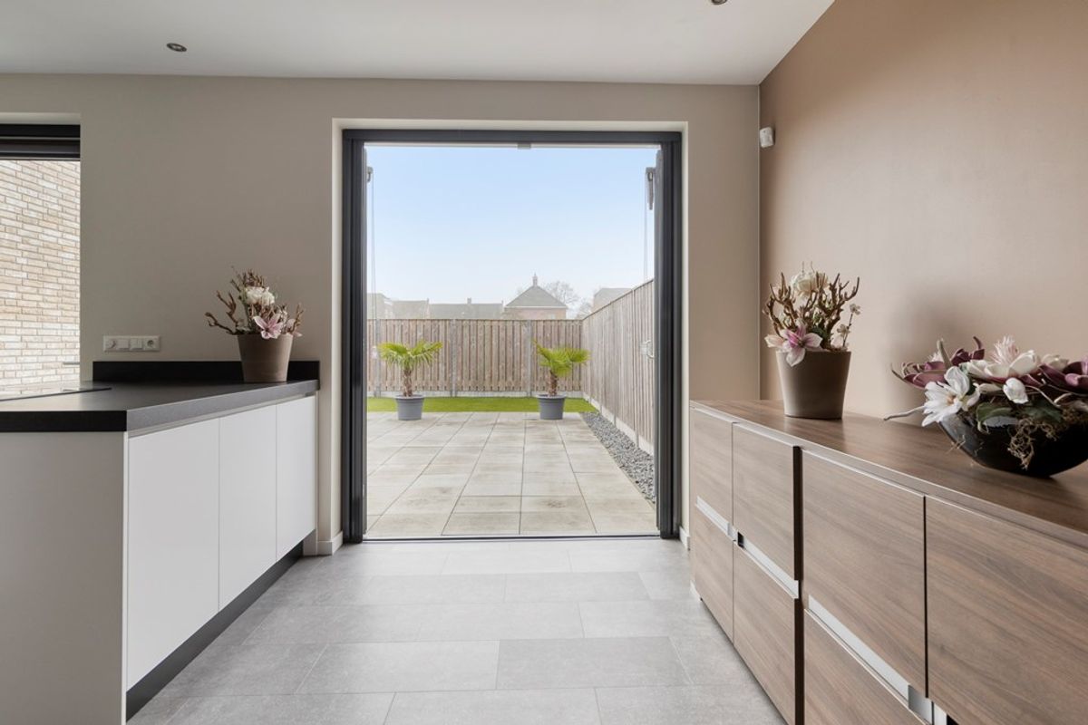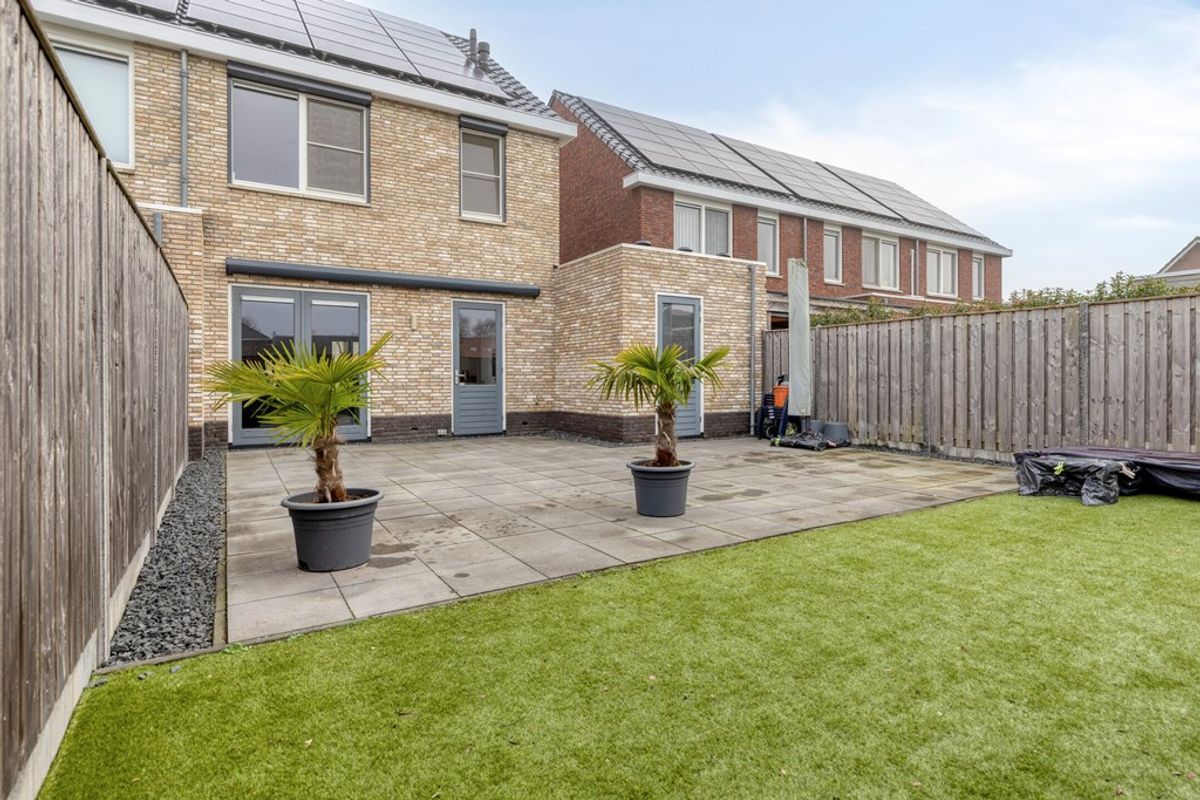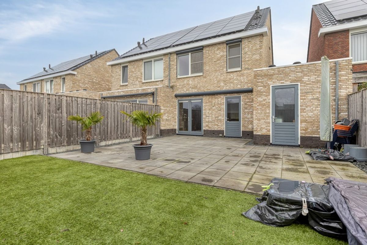 De achtertuin is onderhoudsvrij aangelegd met sierbestrating en heeft vrij uitzicht over de achtergelegen tuinen. Vanuit de tuin kunt door de de loopdeur in de garage naar de voorzijde van de woning.