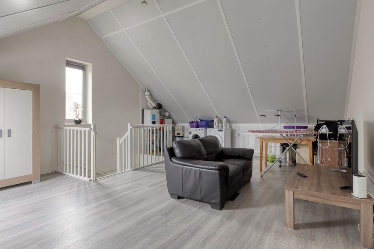 Multifunctionele zolderverdieping, nu in gebruik als een ruime kamer met veel ruimte.