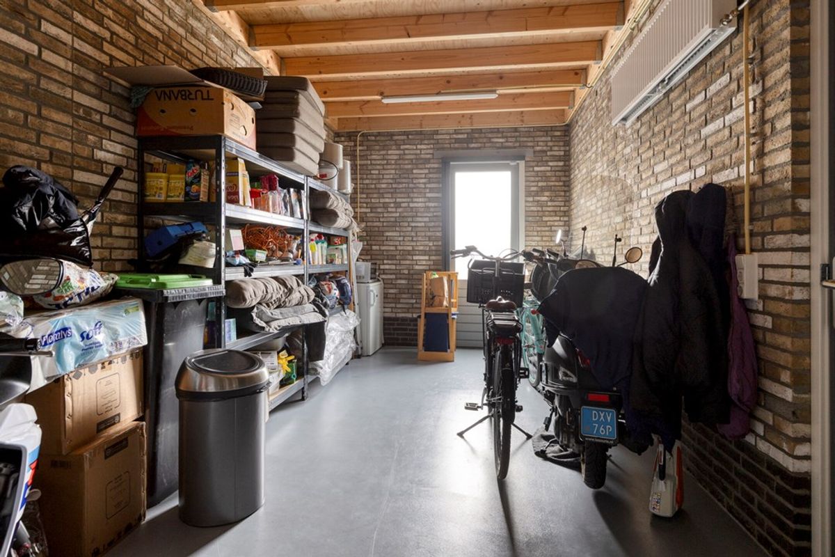 De garage is voorzien van diverse aansluitingen en geeft toegang tot voorgelegen carport en via enkele deur naar de ruime achtertuin.