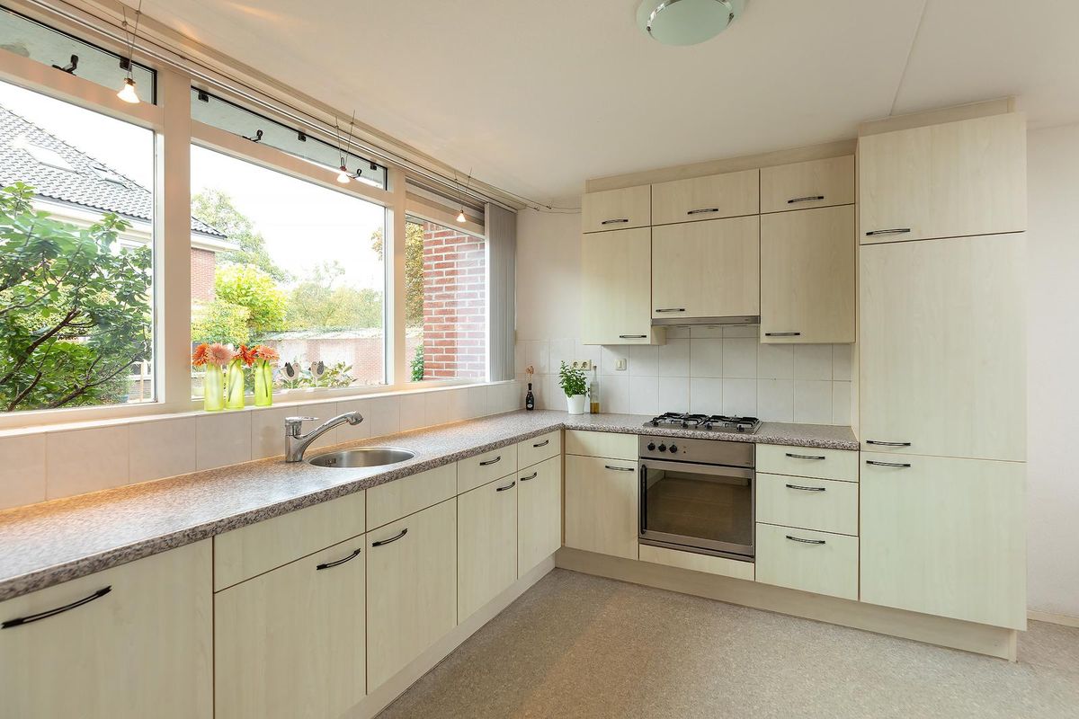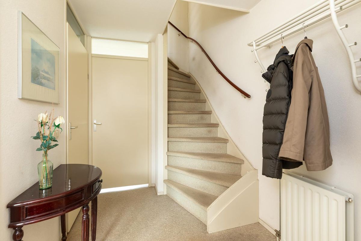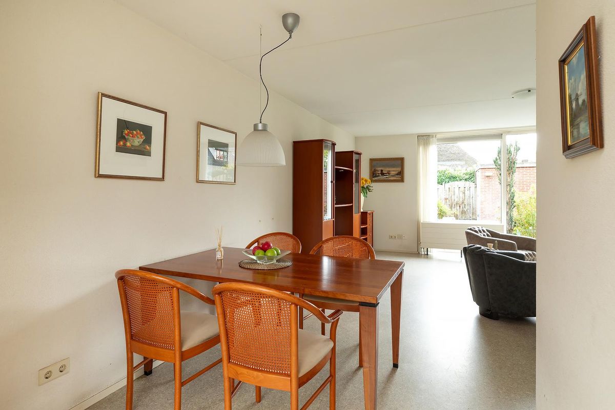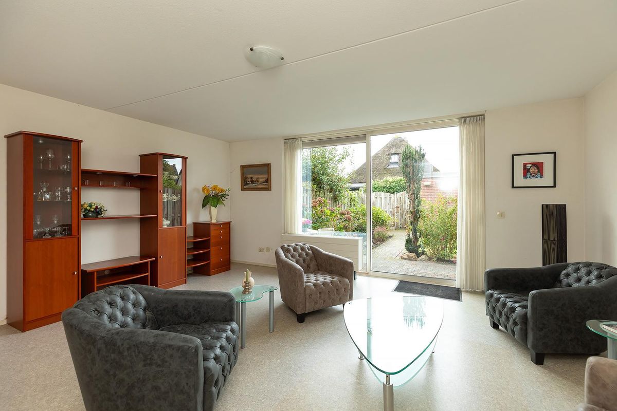 Entree met garderobe, meterkast en toilet met fonteintje. Via de hal bereik je de woonkamer en de keuken. De open keuken aan de voorzijde is uitgerust met een 4-pits gaskookplaat, oven, afzuigkap, vaatwasser, koelkast en vriezer. De lichte, ruime woonkamer beschikt over een praktische trapkast en een schuifpui naar de tuin, waardoor binnen en buiten mooi in elkaar overlopen.