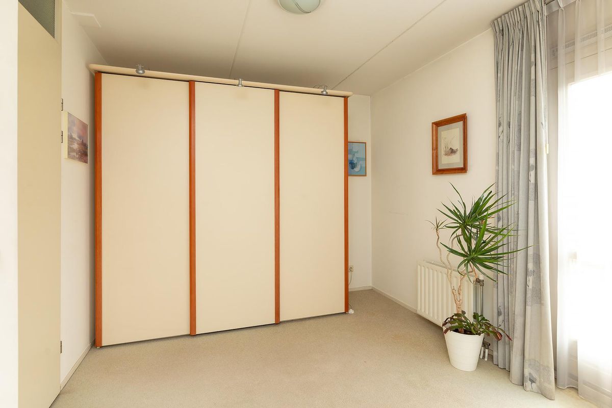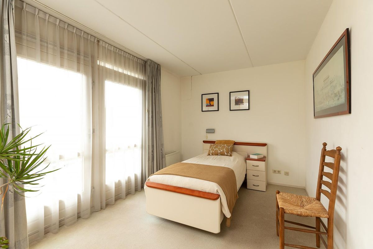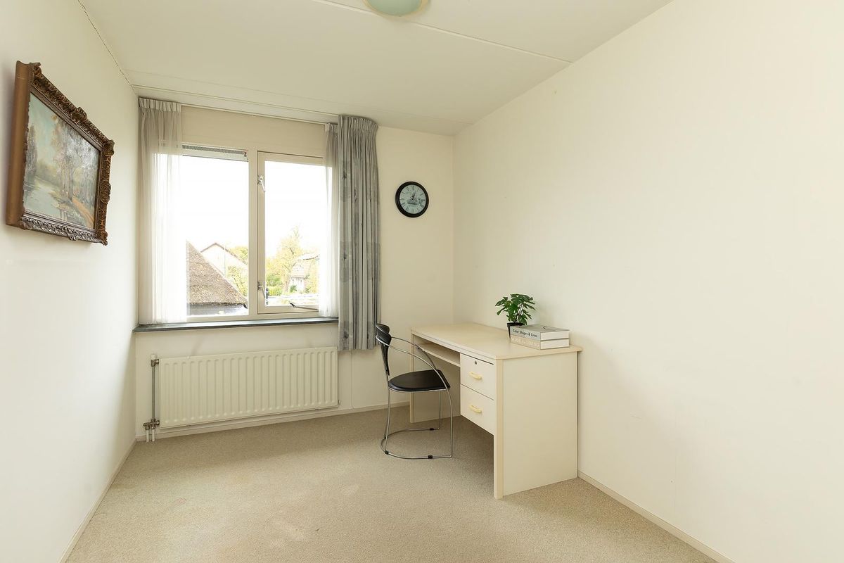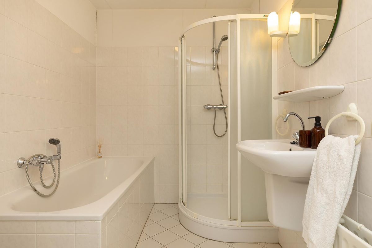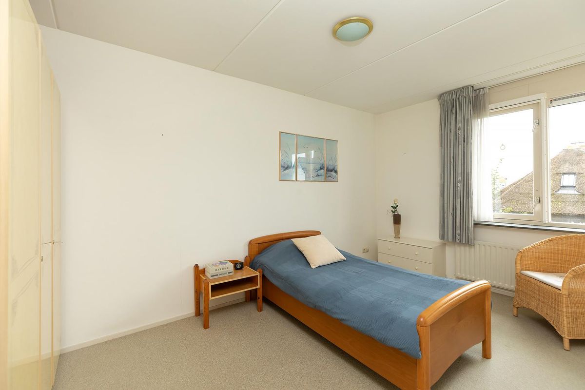 Vaste trap naar tweede verdieping. Ruime voorzolder met aansluitingen voor wasmachine en droger en de CV-ketel (2017). Daarnaast twee slaapkamers waarvan één van circa 18 m² en één slaapkamer van 8 m², beiden met Velux-dakraam. Extra bergruimte is aanwezig achter de knieschotten.
