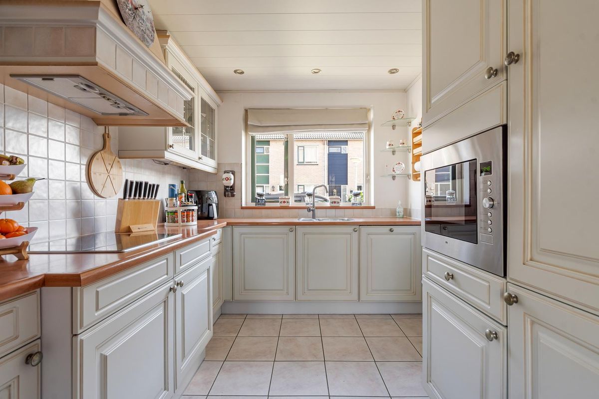 Entree via de hal met meterkast, toiletruimte en trapopgang. De tuingerichte woonkamer is voorzien van een plavuizen vloer en openslaande deuren die zorgen voor veel lichtinval. De sfeervolle open haard in de woonkamer zorgt voor extra warmte en gezelligheid in huis. Aan de voorzijde bevindt zich de keuken in L-opstelling, uitgerust met diverse inbouwapparatuur. De woonkamer geeft toegang tot de zonnige achtertuin met sierbestrating, zonnescherm, buitenverlichting en houten berging.