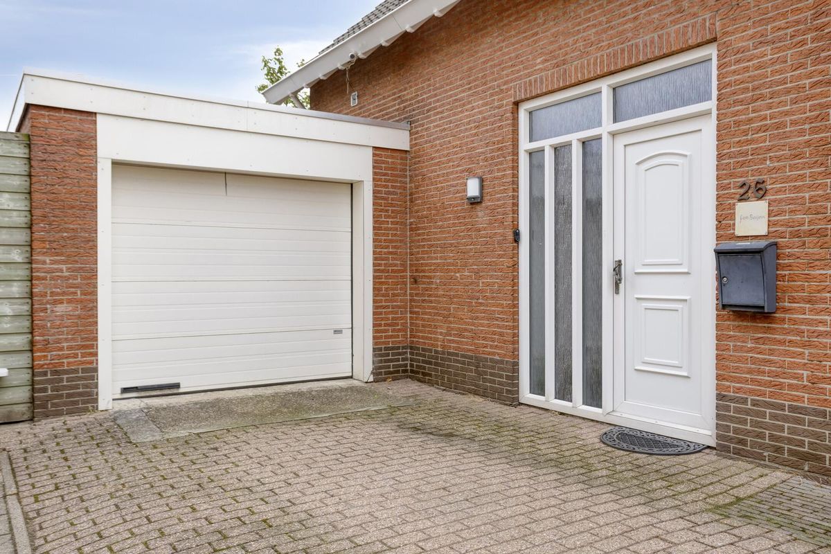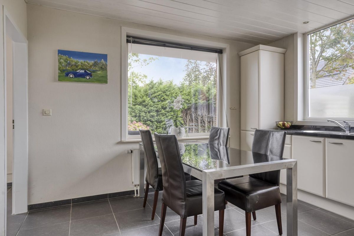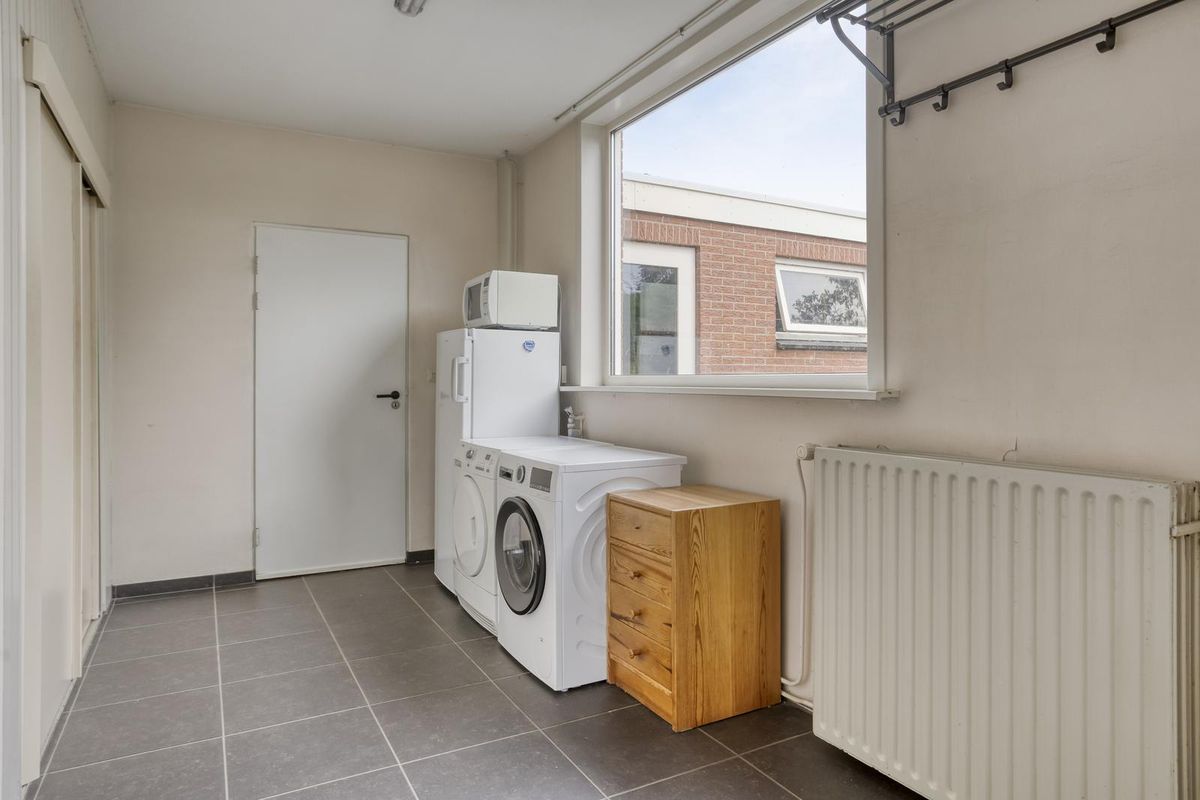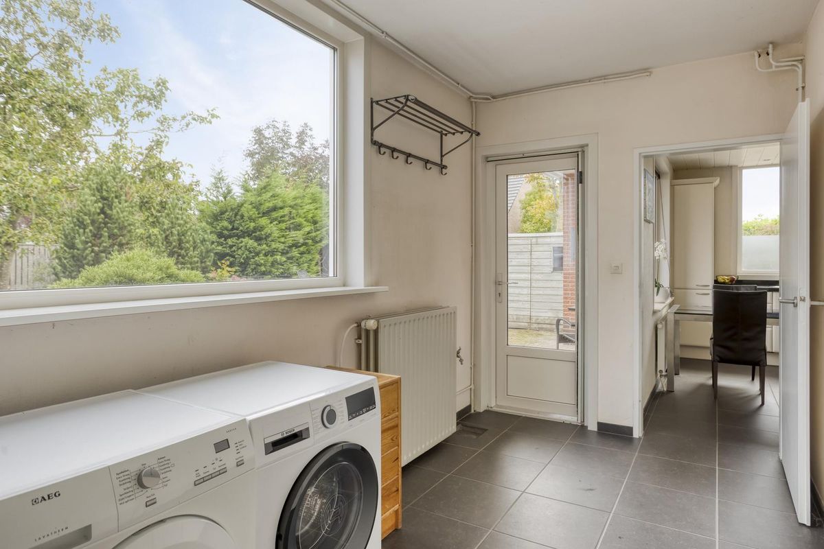 Via de keuken bereikt u de bijkeuken, die toegang geeft tot de in spouwmuur opgetrokken garage en de tuin. Hier vindt u ook de witgoedaansluitingen, extra bergruimte en plek voor een extra koelkast of vriezer. De garage (ca. 7,95 x 3,25 m) is binnendoor bereikbaar en voorzien van krachtstroom en een elektrische kanteldeur. Achter de garage is nog een praktische berging aanwezig, ideaal voor tuingereedschap.