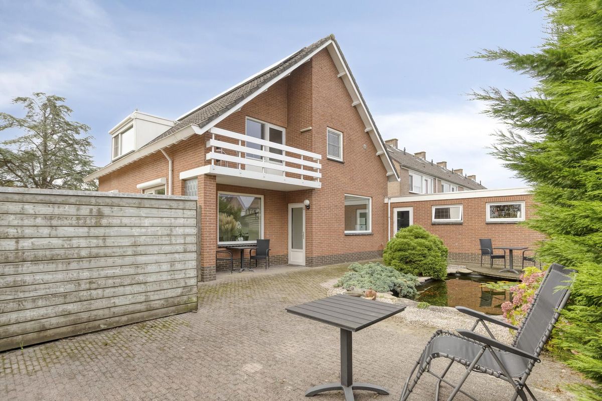 De tuin ligt rondom de woning, waarbij de achtertuin de meest besloten en sfeervolle plek is. Dankzij de ligging op een hoekkavel geniet u hier van veel privacy en vrijheid. De tuin is afwisselend aangelegd met bestrating, gazon, borders en een vijver. Er is altijd wel een plekje in de zon of juist in de schaduw te vinden.