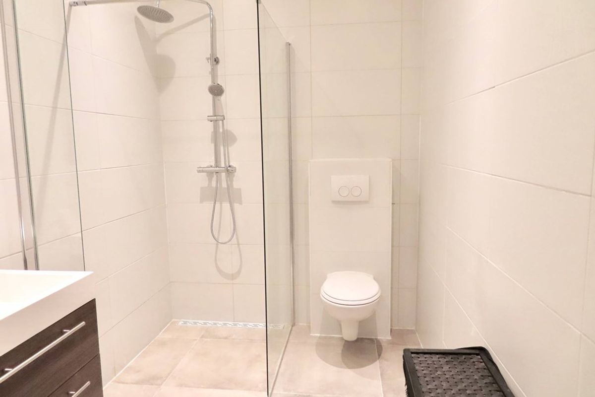 Entrance from hallway to the living room. Spacious living room with quality furniture and expansive windows, making it a bright and comfortable apartment. The Master bedroom with double bed and workspace with acces to the garden. Second bedroom with double bed, wardrobe and access to gaden. Fully fitted, modern kitchen with gas stove, fridge / freezer, oven / microwave and dishwasher. Bathroom with walk in shower, washing machine and toilet. Sunny garden. Laminate (PVC) flooring, double glazed and floor heating & cooling. This apartment is sustainably focussed.