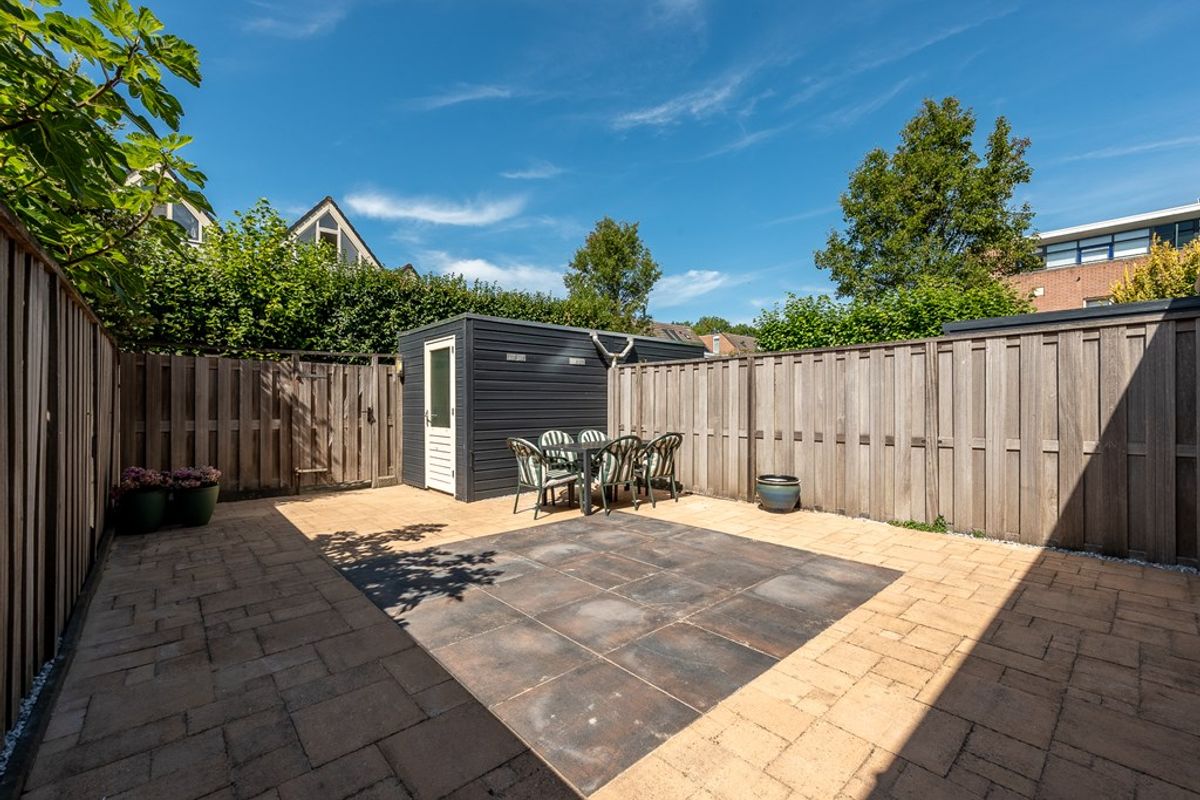 De woning beschikt over zowel een voor- en een achtertuin. De achtertuin, met een achterom, is heerlijk diep te noemen, is voorzien van een stenen berging en biedt volop mogelijkheden voor verschillende zitplekken, speelruimte of een groene inrichting. De achtertuin is op het Noord-Westen gelegen, zon in de namiddag en vroege avonden.