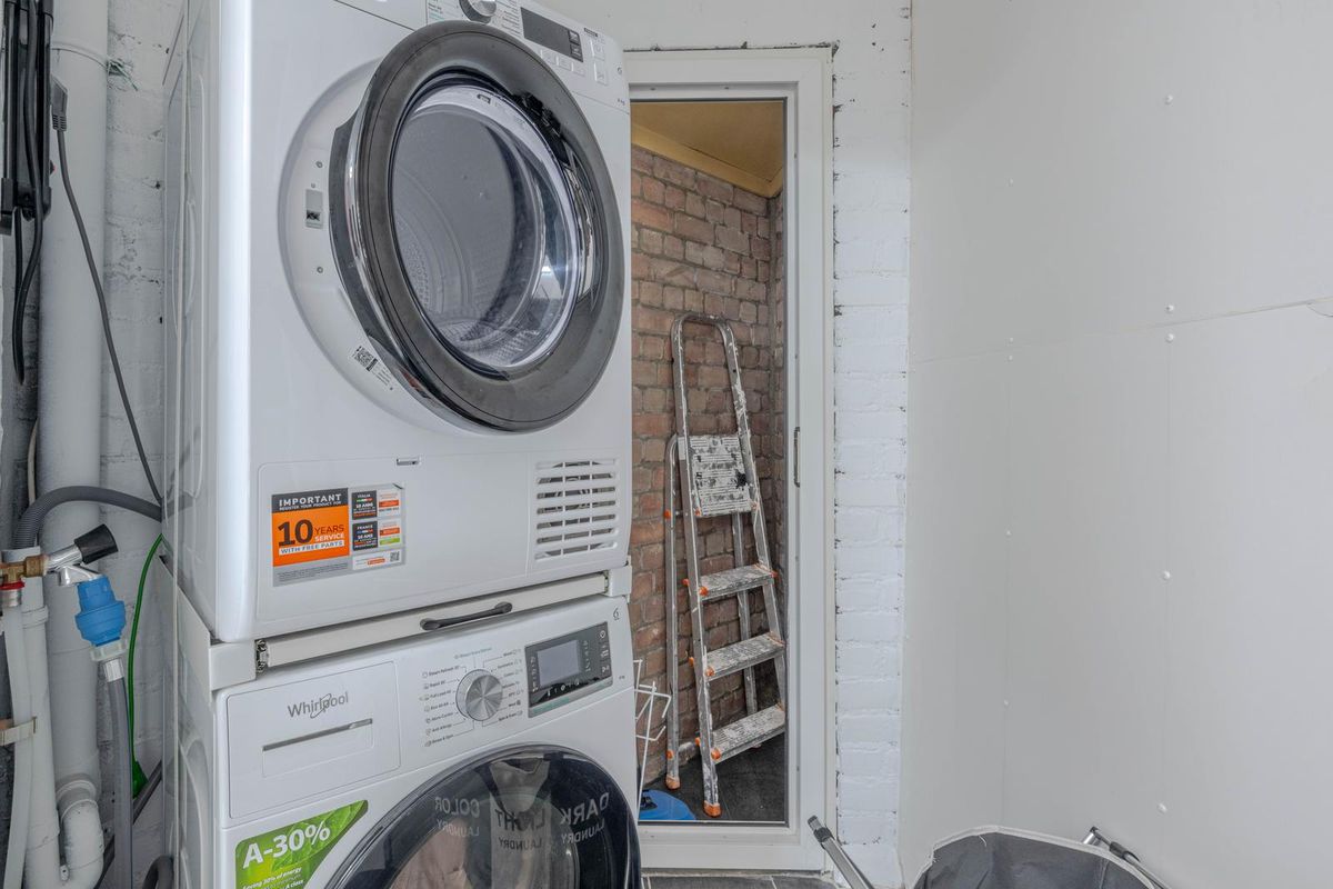 * Wasruimte voorzien van tegelvloer en wasmachine- en drogeraansluiting.