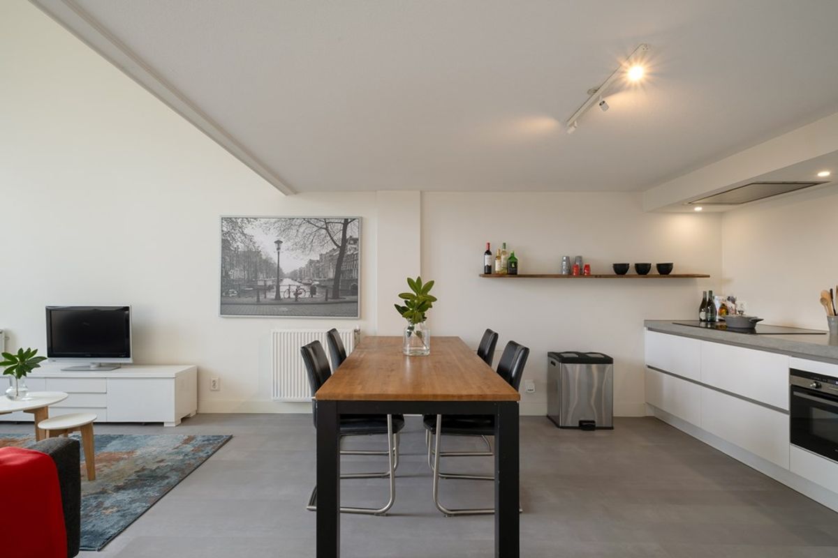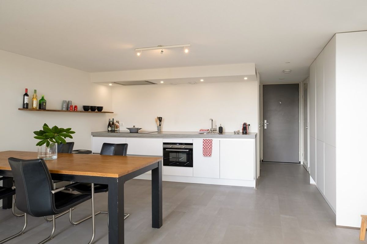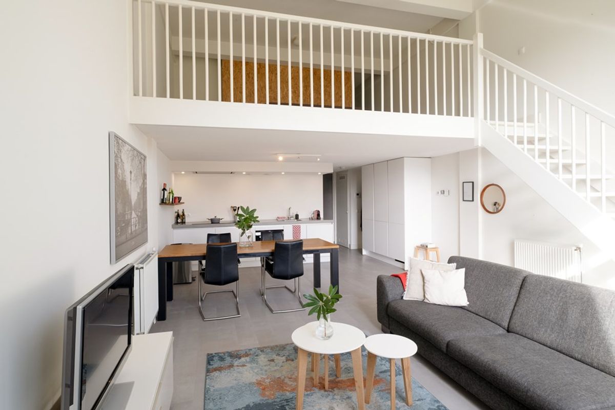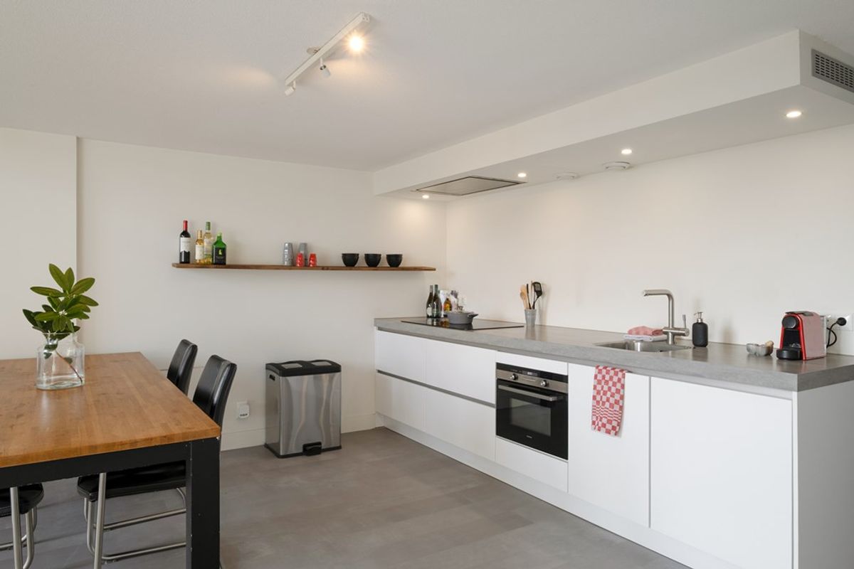 Perfect voor wie houdt van koken en gezelligheid. De prachtige PVC vloer die door is getrokken in de hele loft creëert rust en eenheid.