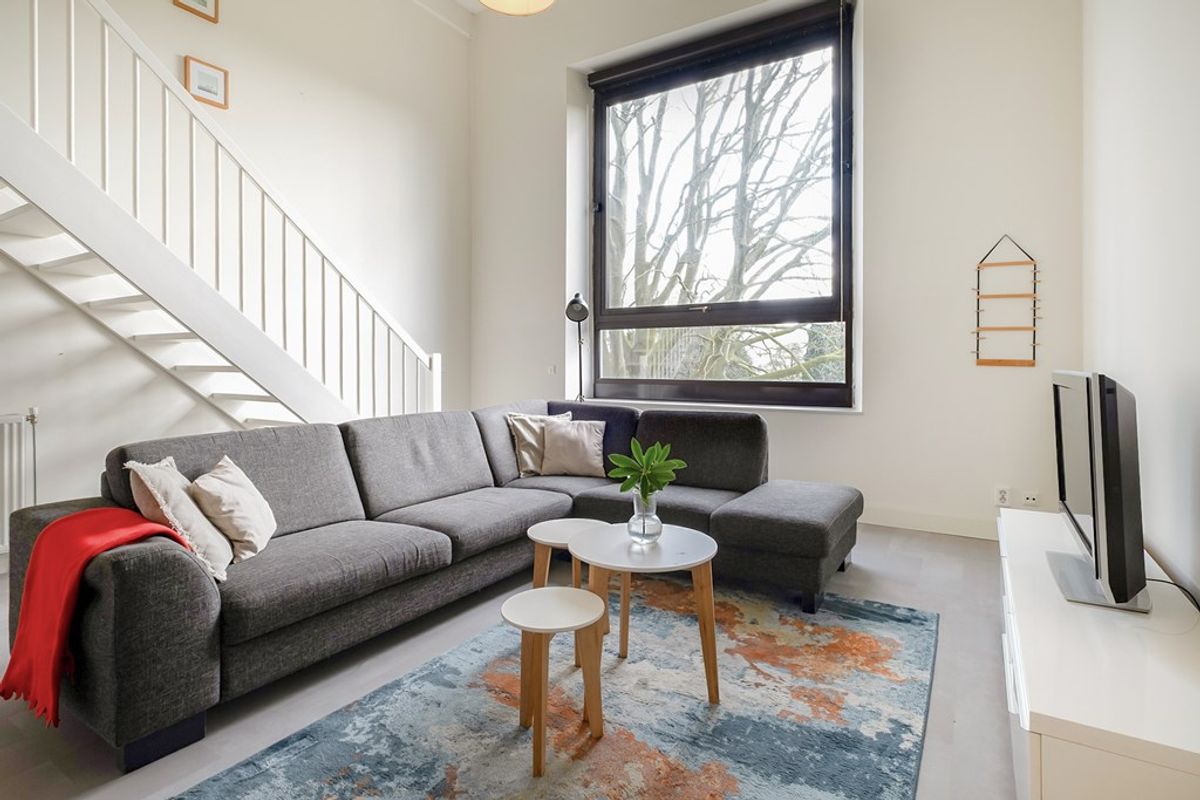 - Vanuit het appartement is er via de grote raampartij over twee verdiepingen een prachtig uitzicht op het groen en de tuin
