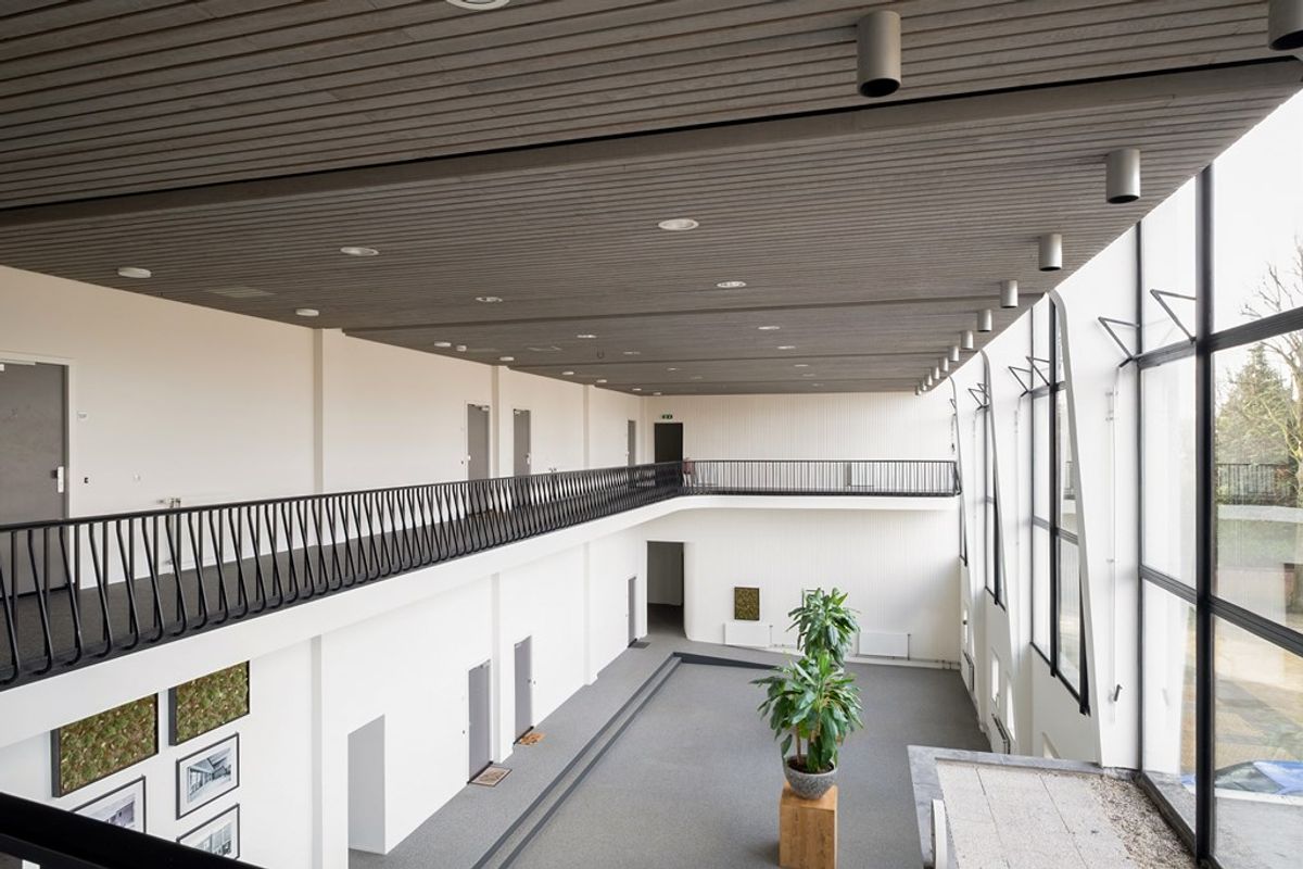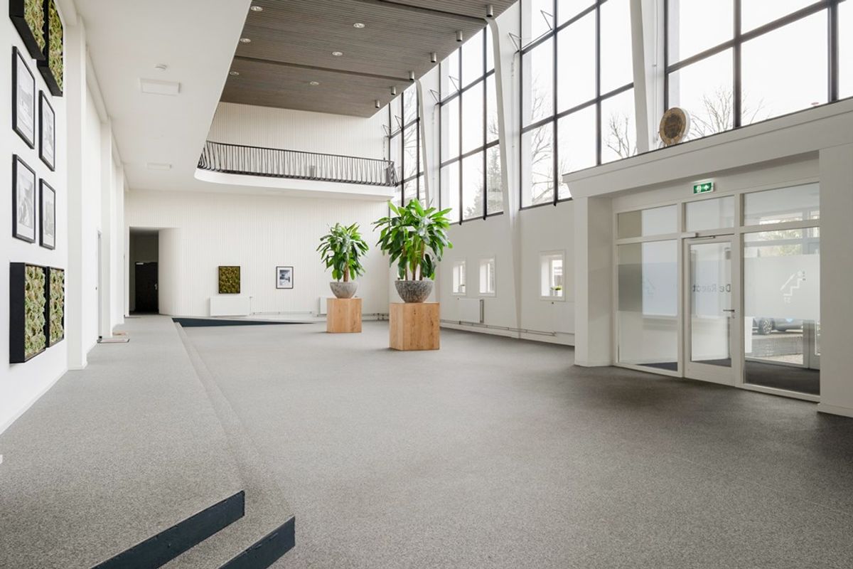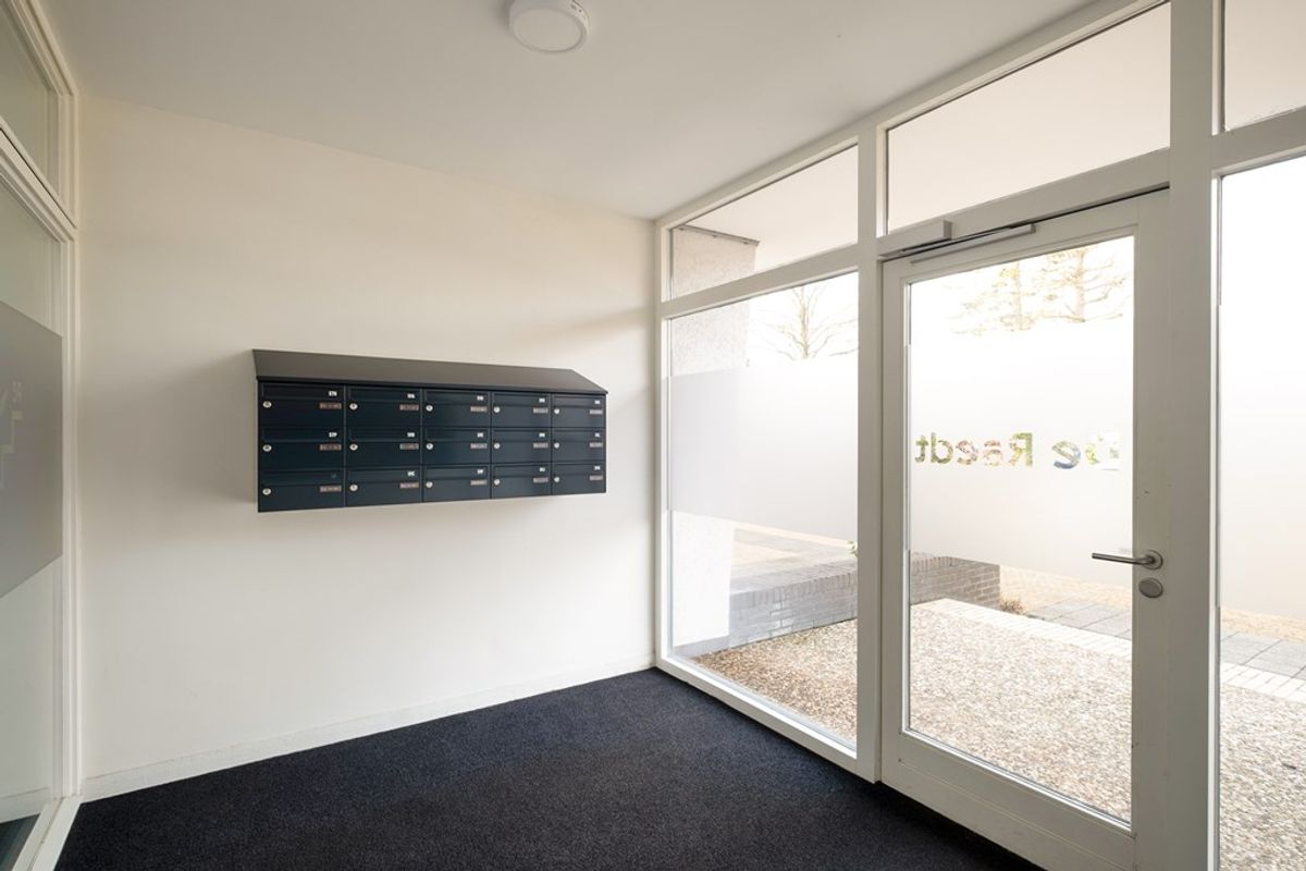 Binnenkomst in de entree met brievenbussen en beltableau en toegang tot een mooi "Atrium". Vanuit hier heeft u toegang tot de appartementen op