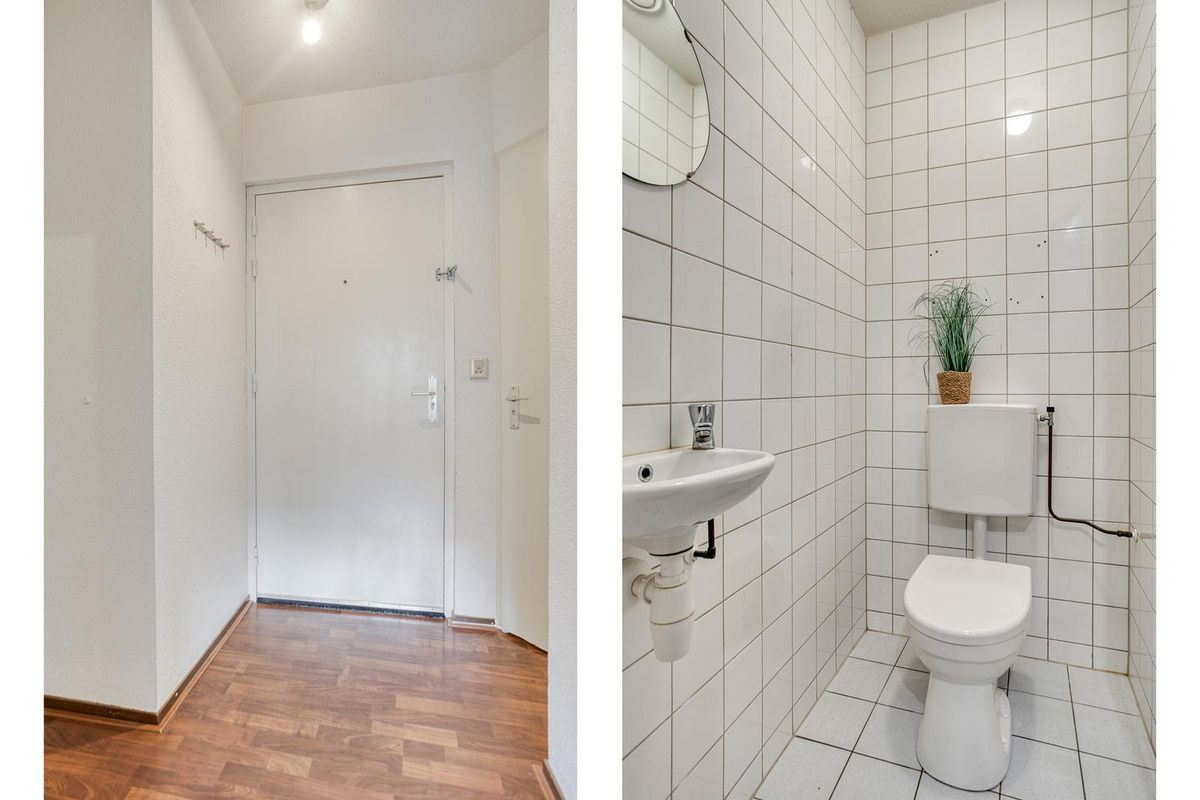 Entree met toegang tot het toilet, badkamer slaapkamer en woonkamer.