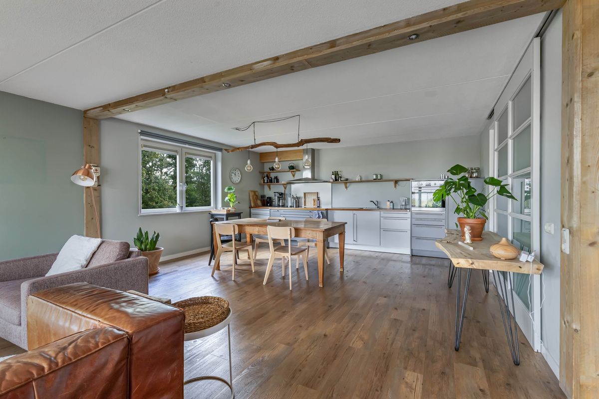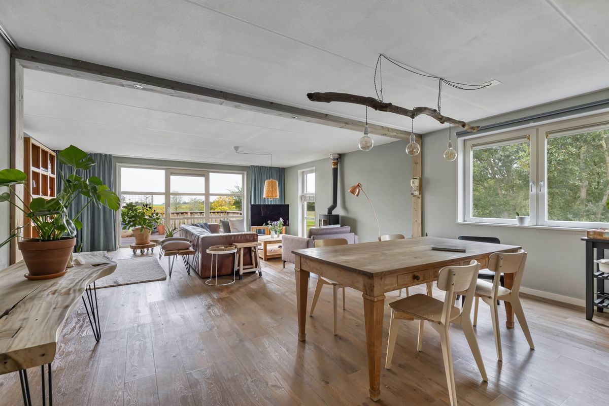 Boven ontvouwt zich een verrassend comfortabele woonruimte. De lichte woonkamer met houtkachel en moderne keuken vormt het hart van de woning, waar binnen en buiten naadloos in elkaar overlopen dankzij het aangrenzende royale balkon met een weids uitzicht over de landerijen. Verder vindt u op deze verdieping drie slaapkamers, een ruime badkamer met ligbad en praktische bergruimte. De tweede verdieping biedt nog eens twee extra slaapkamers en een berging, waardoor er voor het hele gezin of voor logees volop plek is.