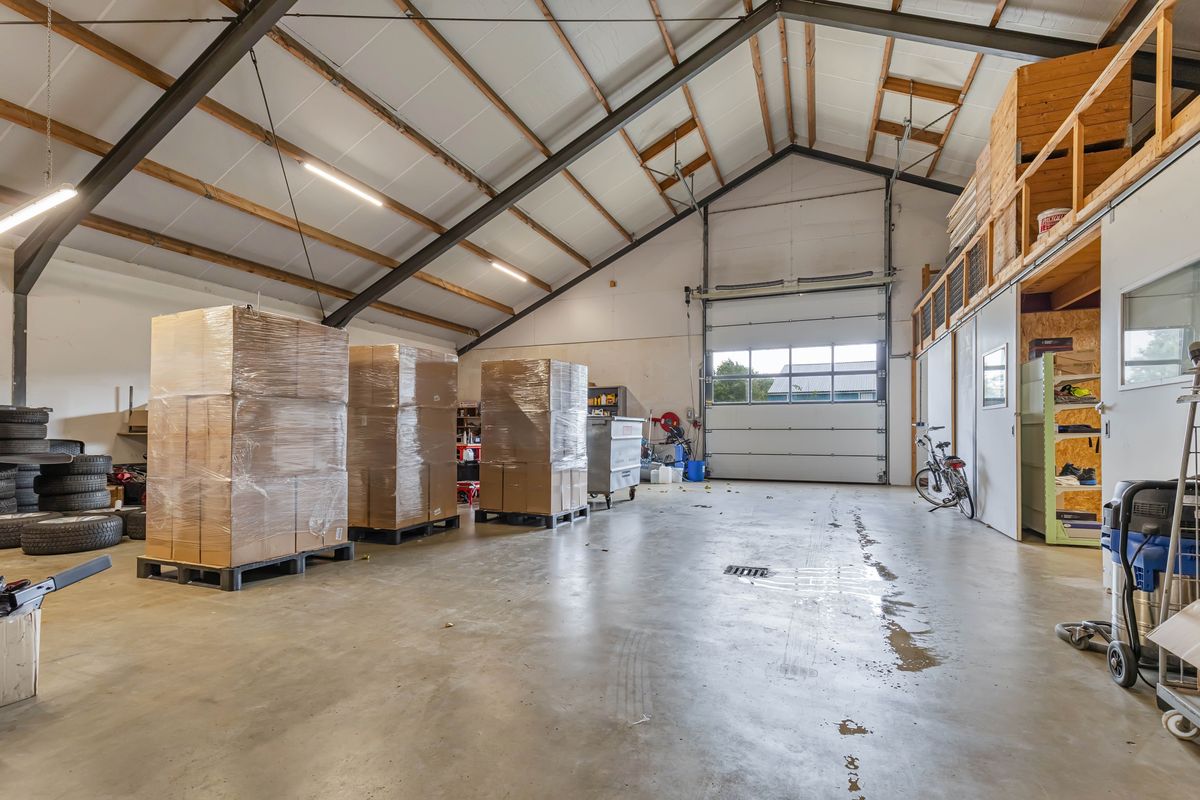 Het bedrijfsdeel op de begane grond biedt volop mogelijkheden dankzij drie multifunctionele ruimtes en een riante bedrijfshal met berging, garage en verdiepingsvloer. Een ideale basis voor wie ruimte zoekt voor een onderneming of opslag.