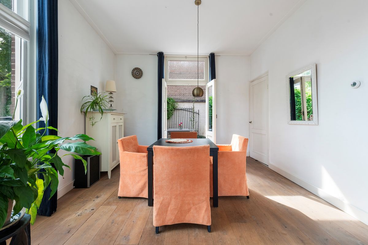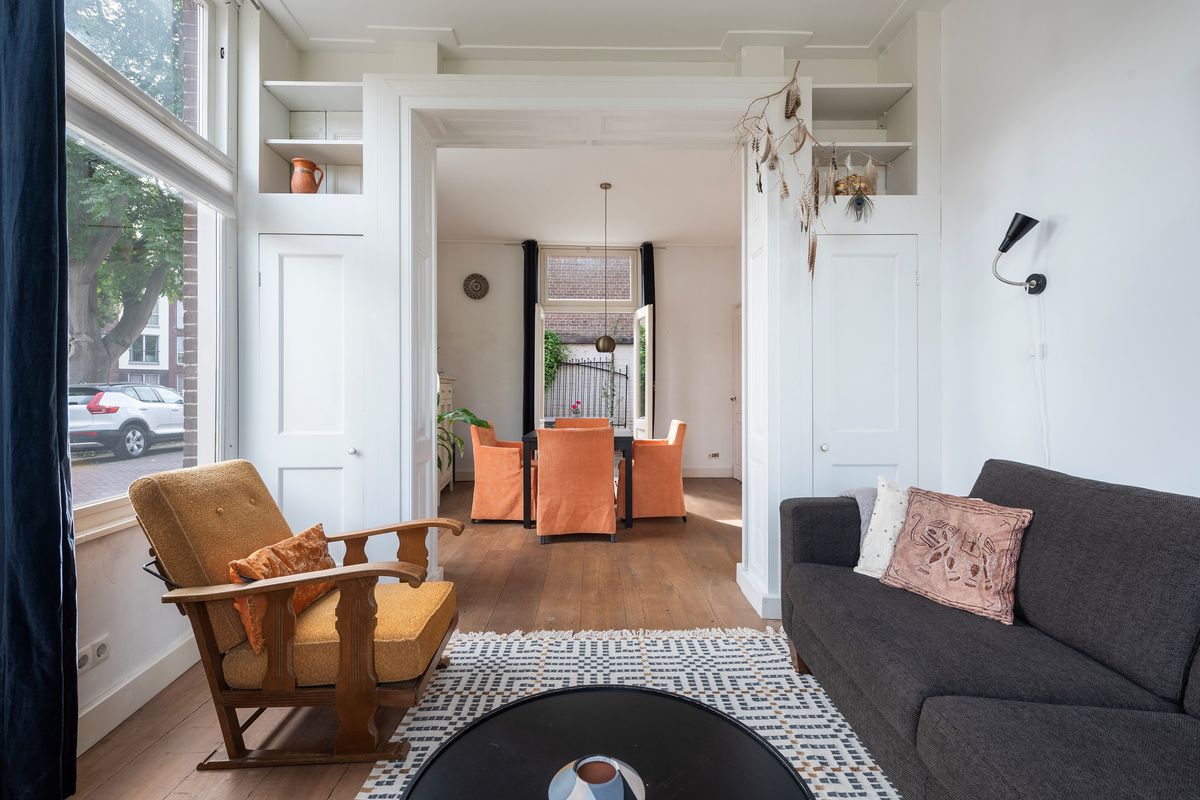 Begane grond: entree, lange hal met toegang tot de keuken, een toilet en de trap naar eerste verdieping. Sfeervolle, ruime woonkamer voorzien van houten vloeren, vaste kasten en openslaande tuindeuren naar een sfeervol terras/stadstuin. De moderne, dichte keuken aan de voorzijde is voorzien van de nodige inbouwapparatuur. Aan de achterzijde van de woning bevindt zich een berging/bijkeuken met tuindeur en cv- en witgoed-opstelplaats.
