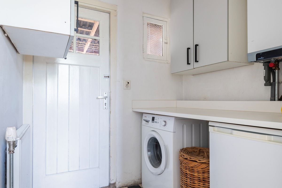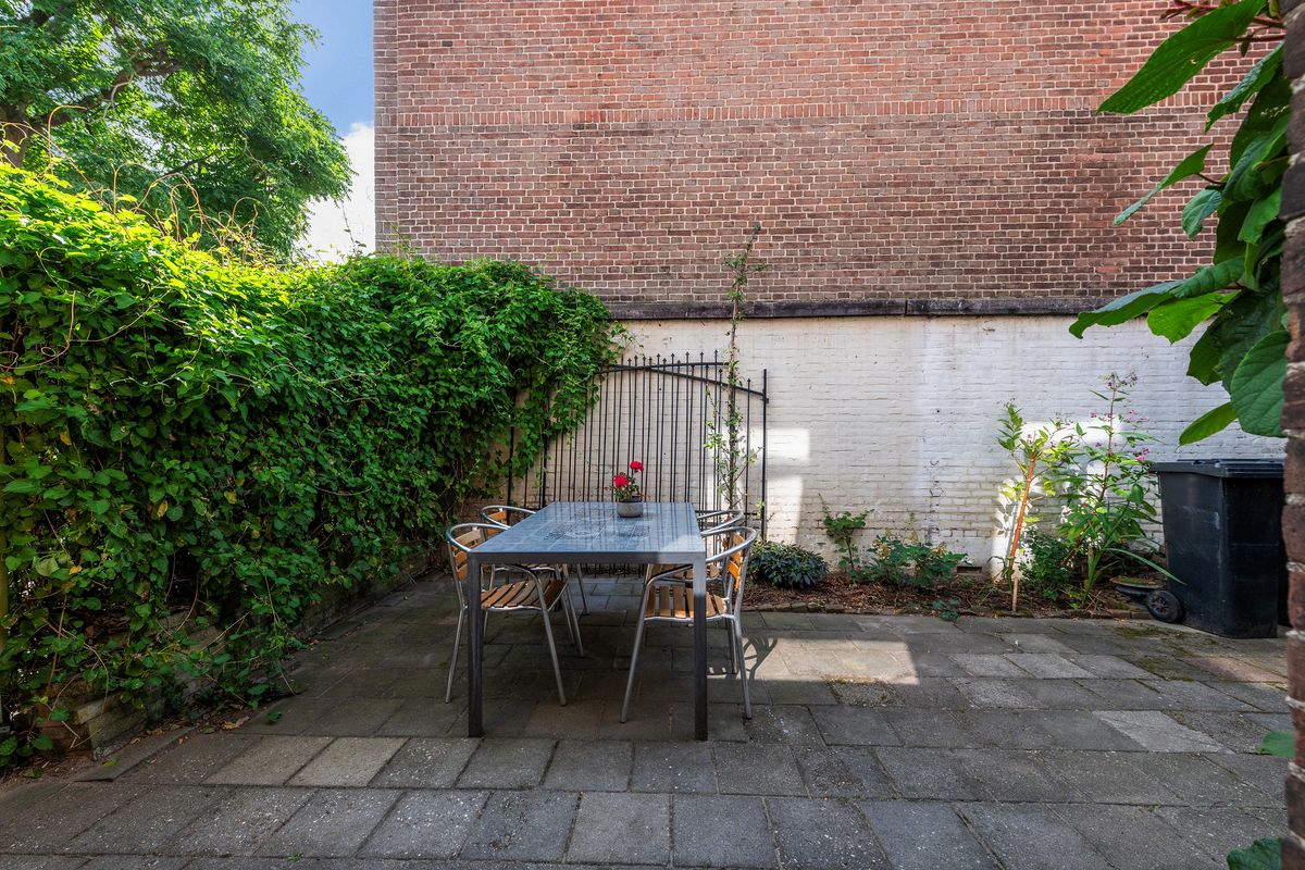Aan de achterzijde van de woning bevindt zich een onderhoudsvriendelijke stadstuin op het zuiden met een kleine overkapping en een achterom.