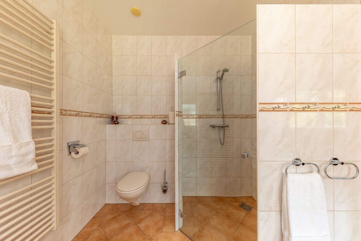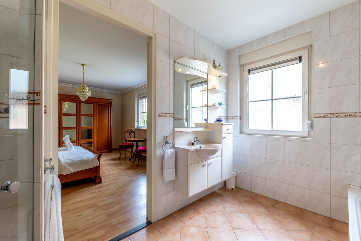 Wat deze woning bijzonder maakt, is de slaapkamer met badkamer op de begane grond. De badkamer is uitgerust met een ligbad, douche, wastafel en toilet en grenst direct aan de slaapkamer.
