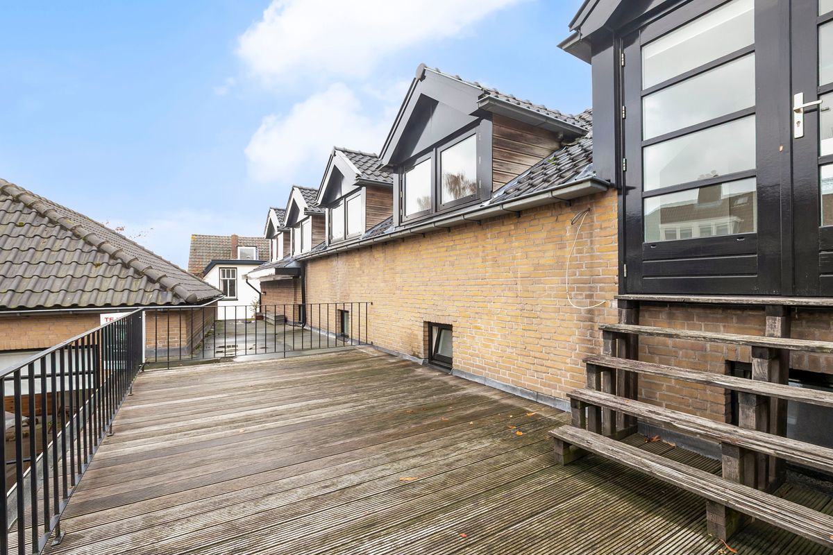 Vanuit de centrale hal, de andere kant op, komt u via een paar treden in een ruimte (± 35 m2) die uitermate geschikt is om te gebruiken als TV- of speelkamer voor de kinderen. Tevens heeft u vanuit deze ruimte toegang via de openslaande deuren naar het dakterras (35 m2) het dakterras is gelegen aan de oostzijde van de woning.