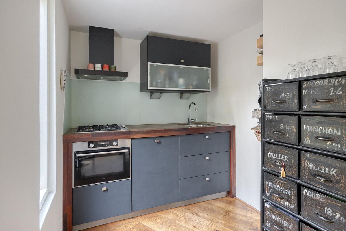 Begane grond: entree, hal, toilet. De slaapkamer is aan de voorzijde gesitueerd en geeft toegang tot de badkamer. Deze is voorzien van douche-/ligbadcombinatie en wastafel. De zeer ruime woonkamer heeft door de bijzondere vormgeving veel lichtinval en geeft toegang tot maar liefst twee terrassen via twee schuifpuien met een prachtig uitzicht op de oude rij bomen van de Schellerbergweg. Er ligt een mooie eikenhouten vloer en de houtkachel geeft extra gezelligheid en sfeer. De nette keuken is voorzien van een gaskookplaat, vaatwasser, combimagnetron en afzuigkap.