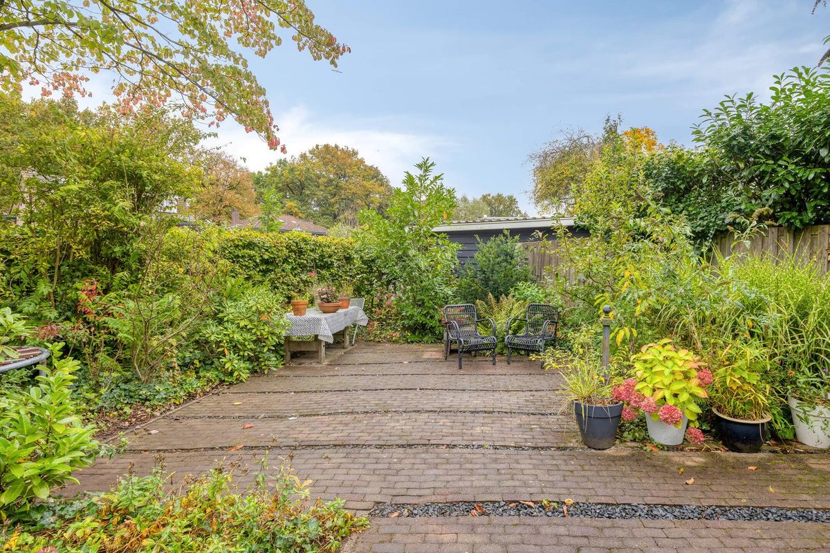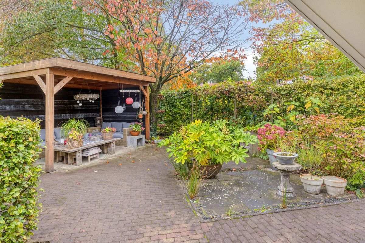 Er is een ruime tuin met veel privacy met diverse terrassen rondom de woning en door de vormgeving van de woning en het perceel kun je op verschillende momenten van de dag kiezen om juist ergens in de zon of in de schaduw te zitten. Of je neemt plaats onder de mooie houten overkapping met zithoek (2016).