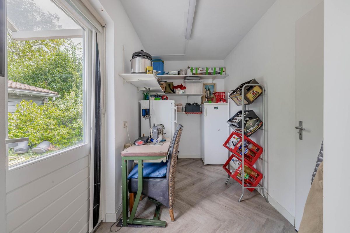 In de bijkeuken (ca. 7m²) is verwarming aanwezig. Een loopdeur biedt toegang tot de achtertuin en via de andere loopdeur is de garage inpandig bereikbaar.