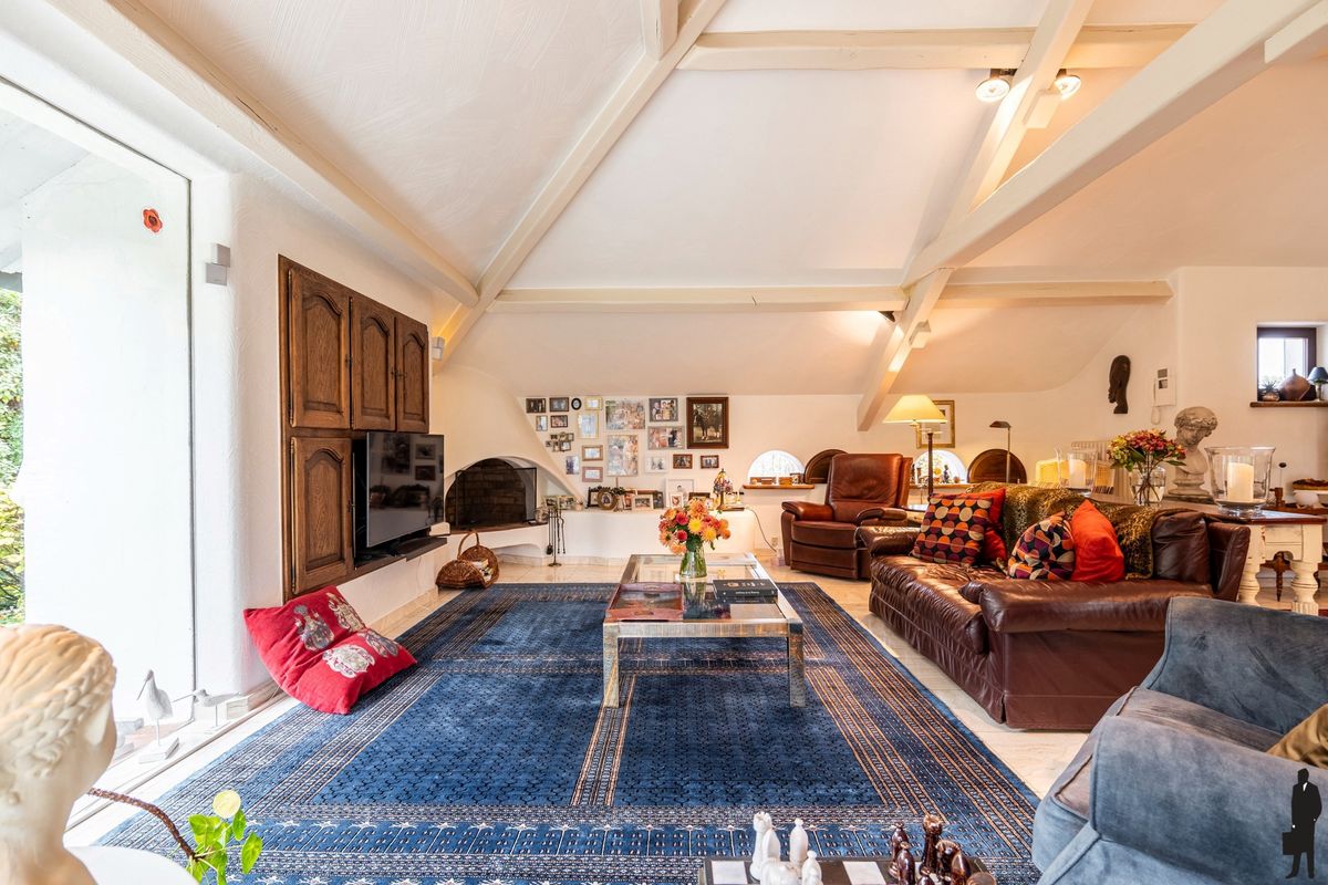 De knusse zithoek is voorzien van een gezellige doch klassevolle open haard die de leefruimte haar sfeervolle uitstraling geeft.