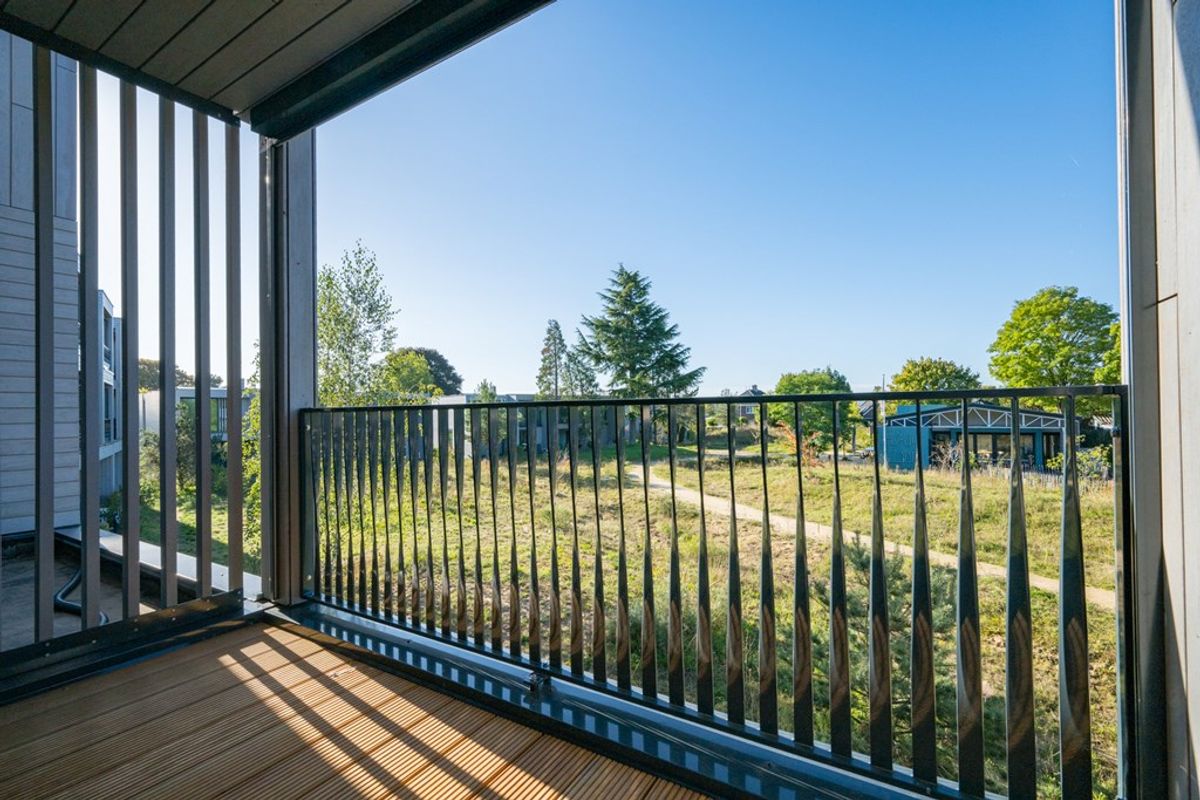 Het overdekte balkon is een heerlijk verlengstuk van uw woonruimte. Via de schuifpui vanuit de woonkamer stapt u zo het balkon op, dat is afgewerkt met fraai houten vlonders. De overkapping biedt beschutting tegen zon en regen, waardoor u hier het hele jaar door kunt genieten. Het balkon kijkt uit over de gezamenlijke groene tuin en biedt voldoende ruimte voor een gezellige zithoek.