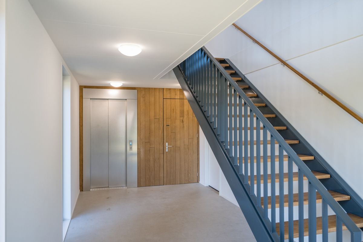 Aangrenzend aan de keuken bevindt zich een goed ingerichte technische ruimte. Hier zijn de duurzame installaties ondergebracht die dit appartement zo energiezuinig maken: de warmtepomp en het warmteterugwinsysteem zorgen samen voor een constant comfortabel binnenklimaat met minimaal energieverbruik. Tevens biedt deze ruimte plaats aan de wasmachine en droger.