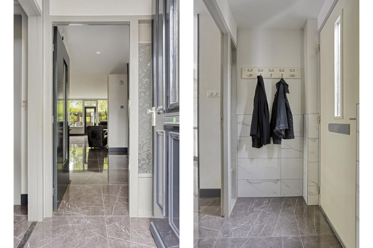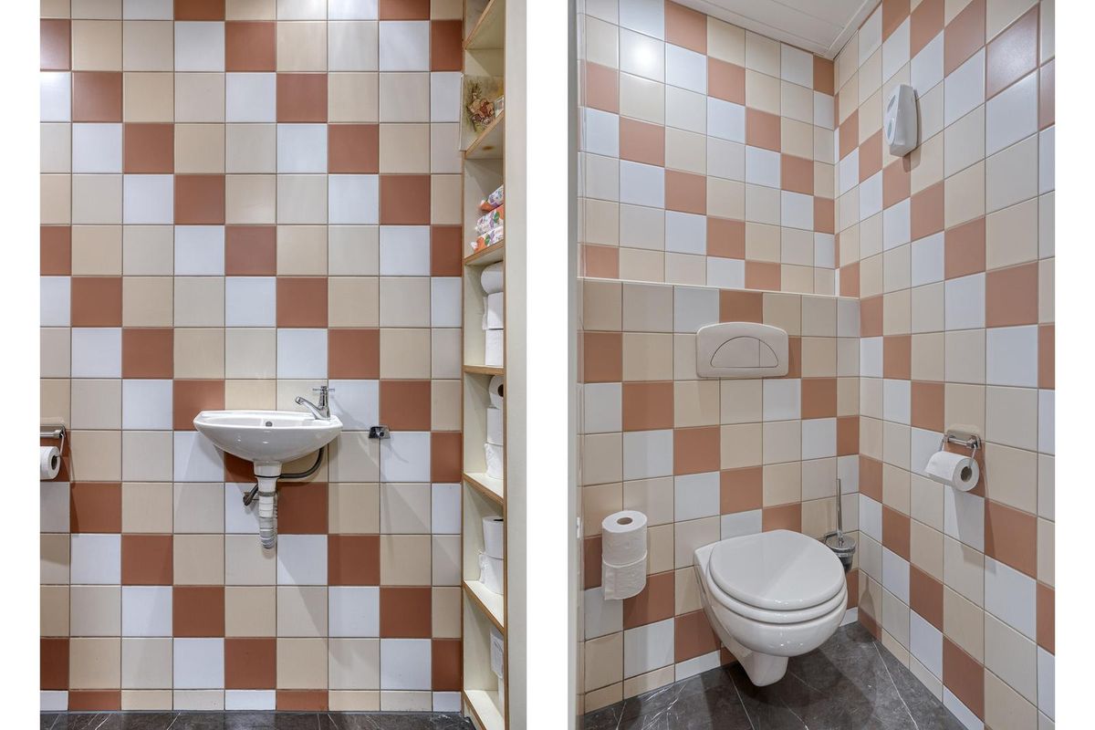 Aan de voorzijde van de woning bevindt zich een ruime berging. Via de entree heb je toegang tot zowel de berging als de meterkast. Vanuit de berging bereik je het nette toilet met fonteintje. De gehele begane grond is voorzien van grote plavuizen met vloerverwarming, wat zorgt voor een aangenaam wooncomfort.