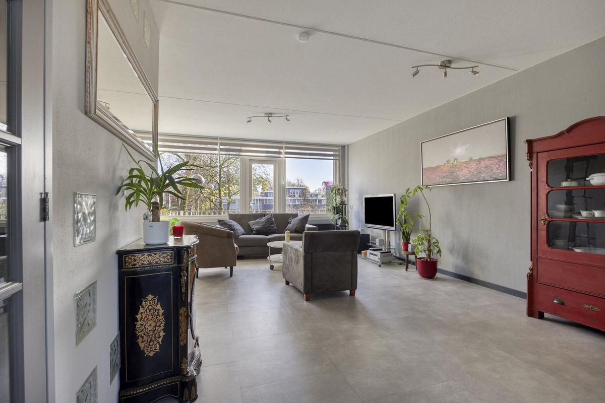 Royale woonverdieping met een grote, lichte woonkamer voorzien van een balkon op het oosten, over de volledige breedte van de woning, met uitzicht op de groenstrook. De halfopen U-keuken is uitgerust met diverse inbouwapparatuur, waaronder een afzuigkap, inductiekookplaat, boiler, vaatwasser, Quooker, koel-vriescombinatie, combimagnetron en oven. De grote raampartijen zorgen voor bijzonder veel lichtinval.