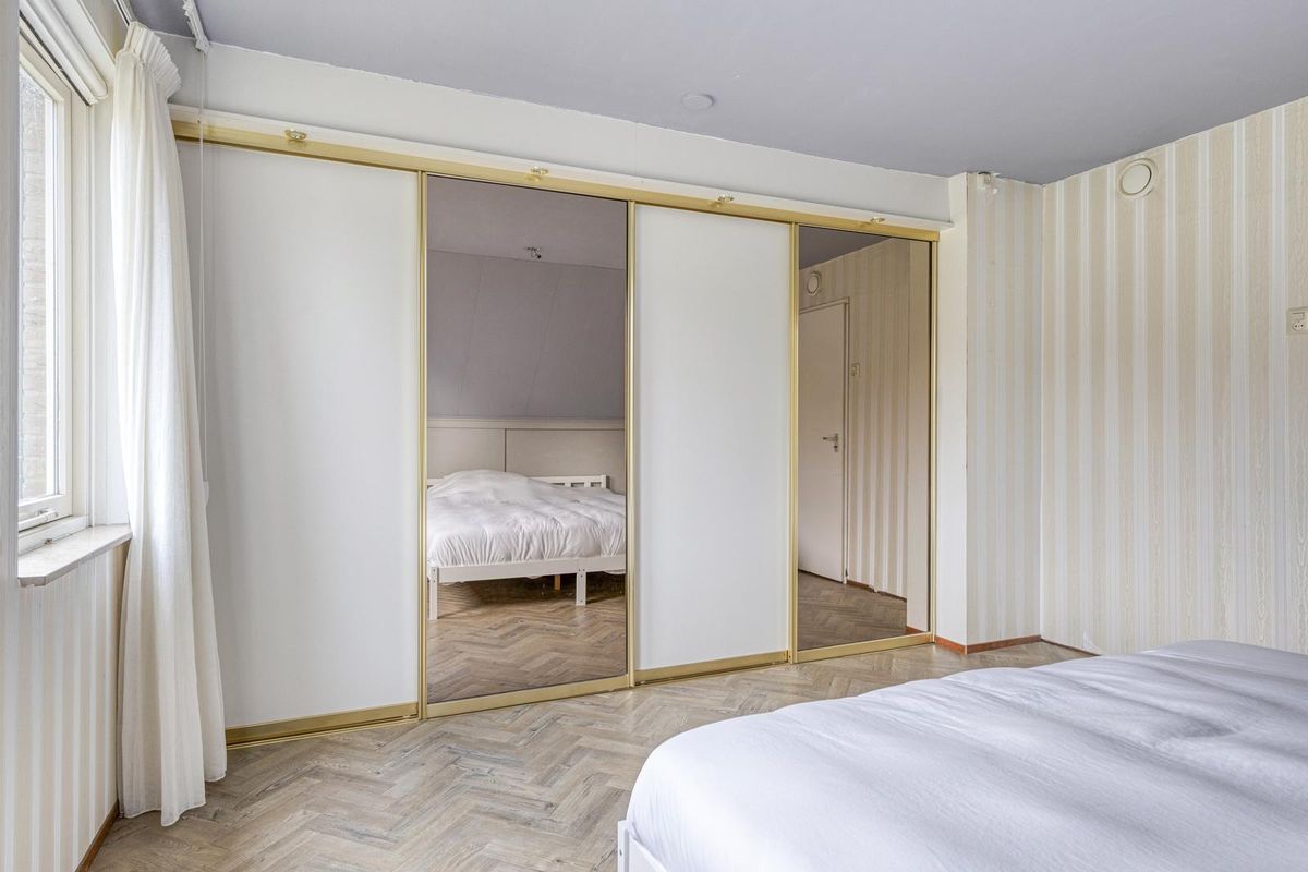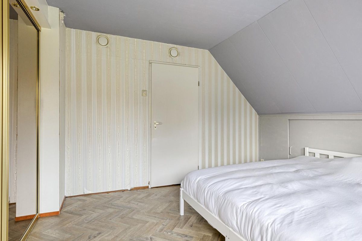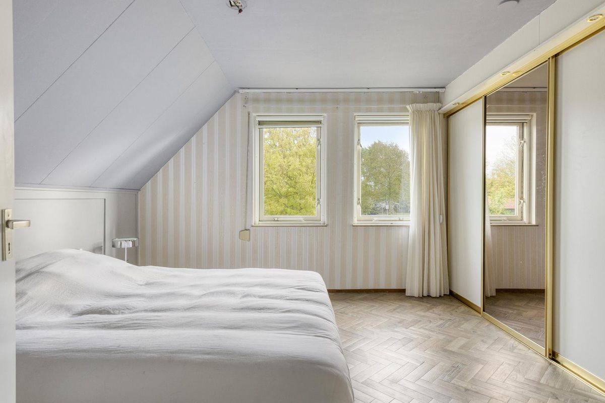 Via de trap in de hal kom je op de eerste verdieping. Deze biedt twee prima slaapkamers: een ruime hoofdslaapkamer van ca. 17 m² met brede, vaste kastenwand en een tweede slaapkamer van ca. 12 m² met een eigen wastafel. Er tussen bevindt zich de badkamer met een dakkapel, wat de ruimte lekker praktisch maakt en bovendien zorgt dat er een raam geopend kan worden voor de natuurlijke ventilatie. De ruimte is voorzien van een wastafelmeubel, ligbad met douche en tweede toilet. Via een luik is er nog een bergzolder onder de kap.