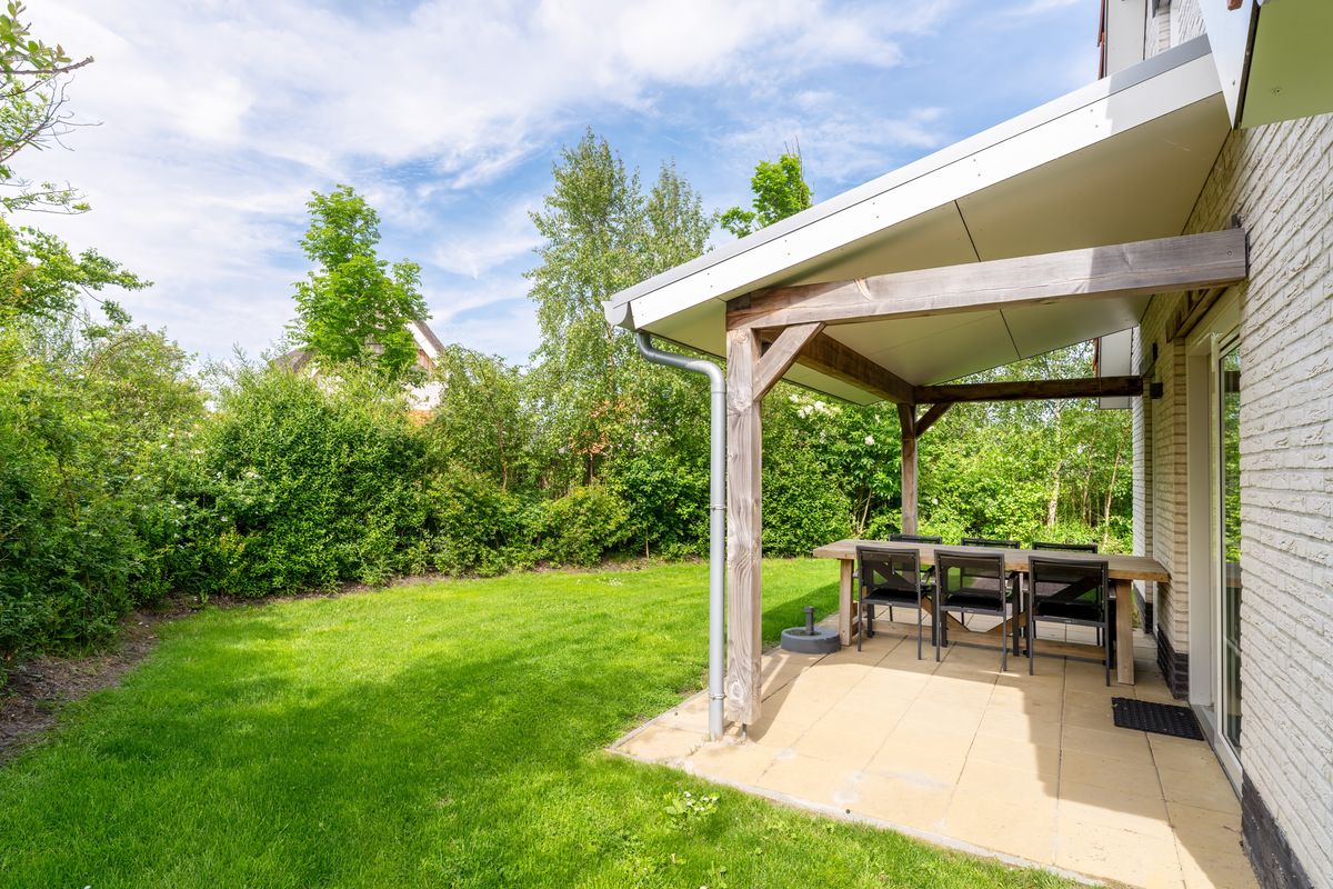 Rondom de woning ligt een fraai aangelegde, met gras ingezaaide tuin met een zuidwestelijke ligging. Hierdoor geniet je vrijwel de hele dag én avond van de zon — ideaal voor lange, ontspannen momenten buiten.