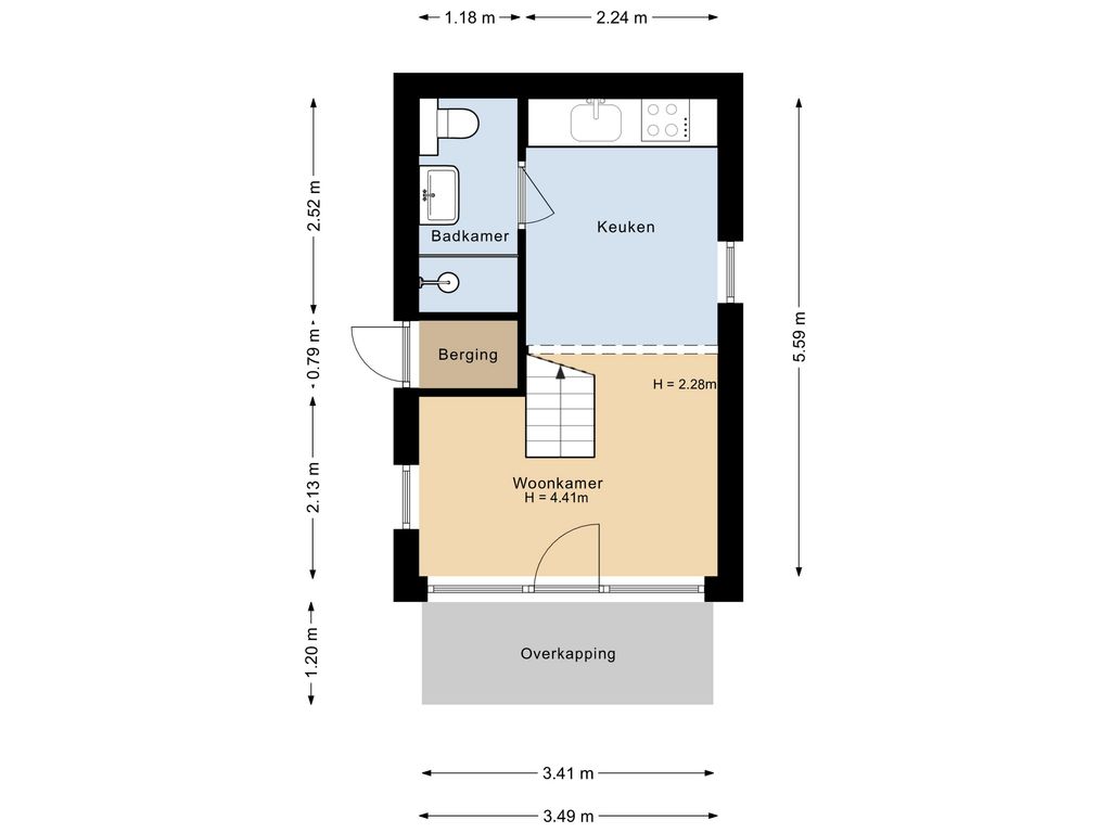 Onder de trap bevindt zich een praktische berging, handig voor het opbergen van koffers, schoonmaakmiddelen of strandspullen. Alles heeft zijn plek, wat de woning netjes en overzichtelijk houdt.