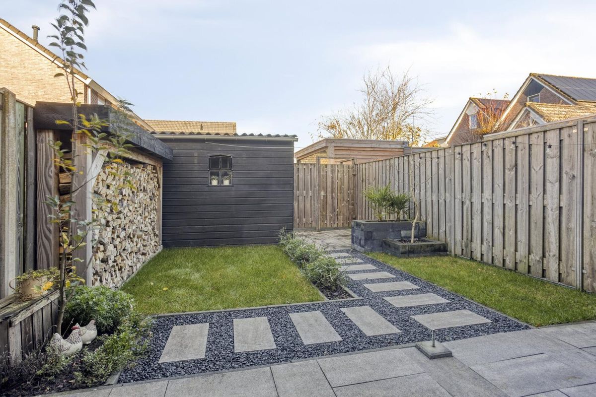 Van hieruit kijk je de achtertuin in, die in 2023 volledig opnieuw is aangelegd en daardoor direct strak, fris en onderhoudsvriendelijk aanvoelt.