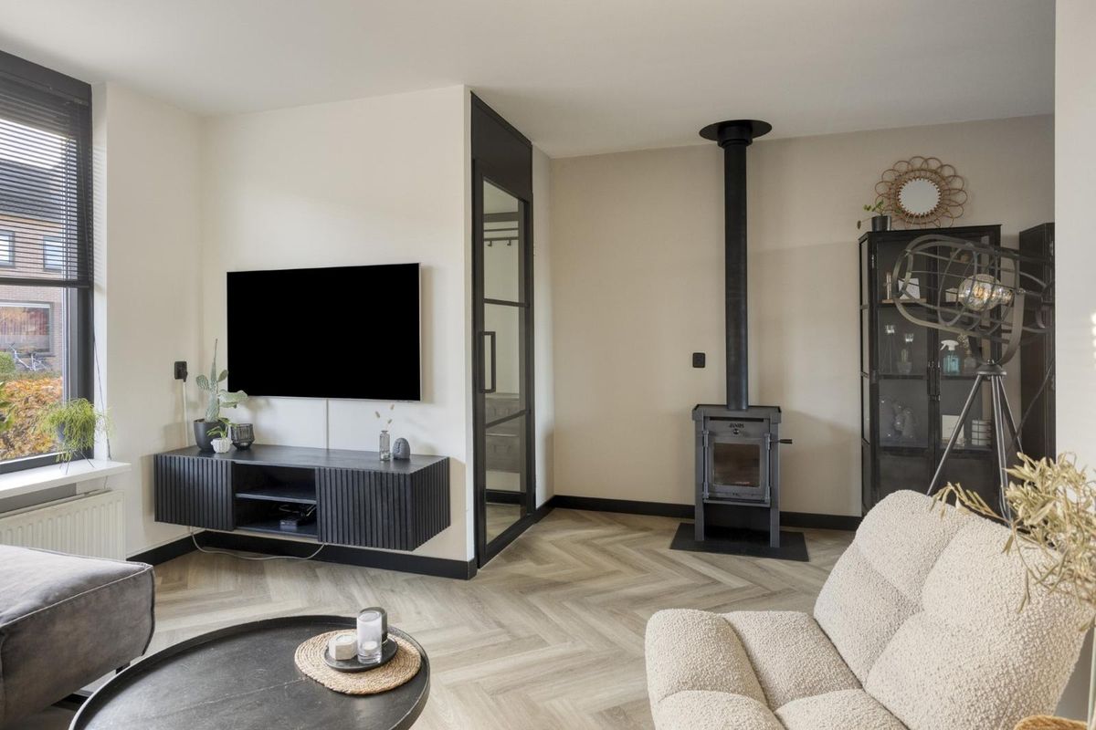De houtkachel staat hier mooi in het zicht en zorgt voor dat knusse, huiselijke gevoel dat je meteen omarmt.