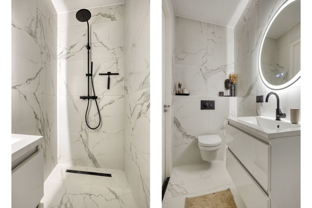 The living room is cleverly designed and feels surprisingly spacious. Large windows and French doors leading to the roof terrace bring in plenty of light and create an airy atmosphere. The terrace itself is generous and offers the perfect setting for breakfast in the sun, a summer drink with friends or a relaxed evening under the stars. With direct access from the living room, the outdoor space truly becomes an extension of your living area.