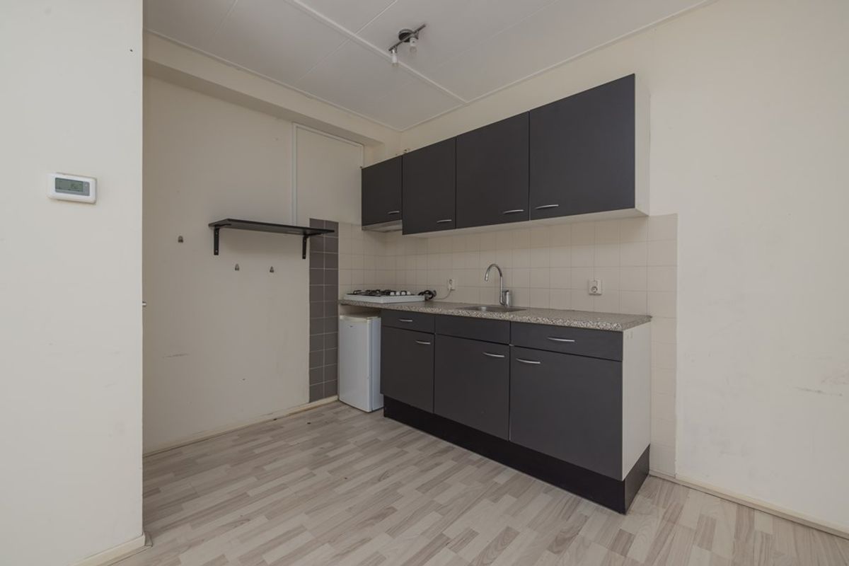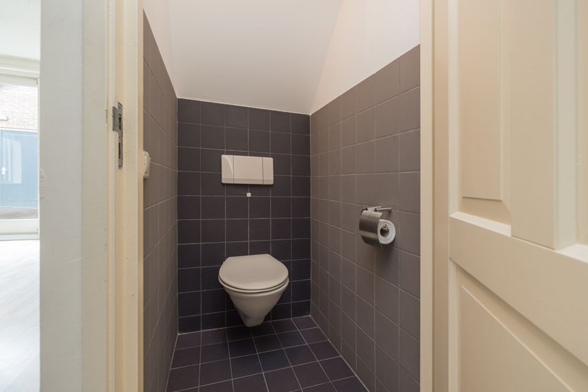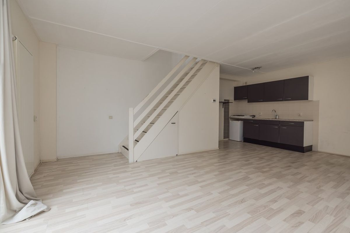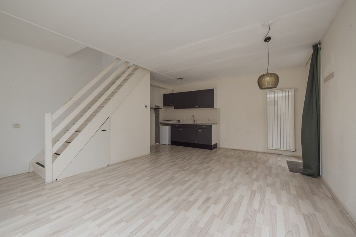 Entree, een aangenaam lichte woonkamer met een keurige moderne open keuken. Er is bergruimte onder de trap en er is een toiletruimte. Aan de achterzijde bereikt u via de schuifpui de ruimte achter de woning. Een gedeelte van deze buitenruimte wordt aan de woning toebedeeld.