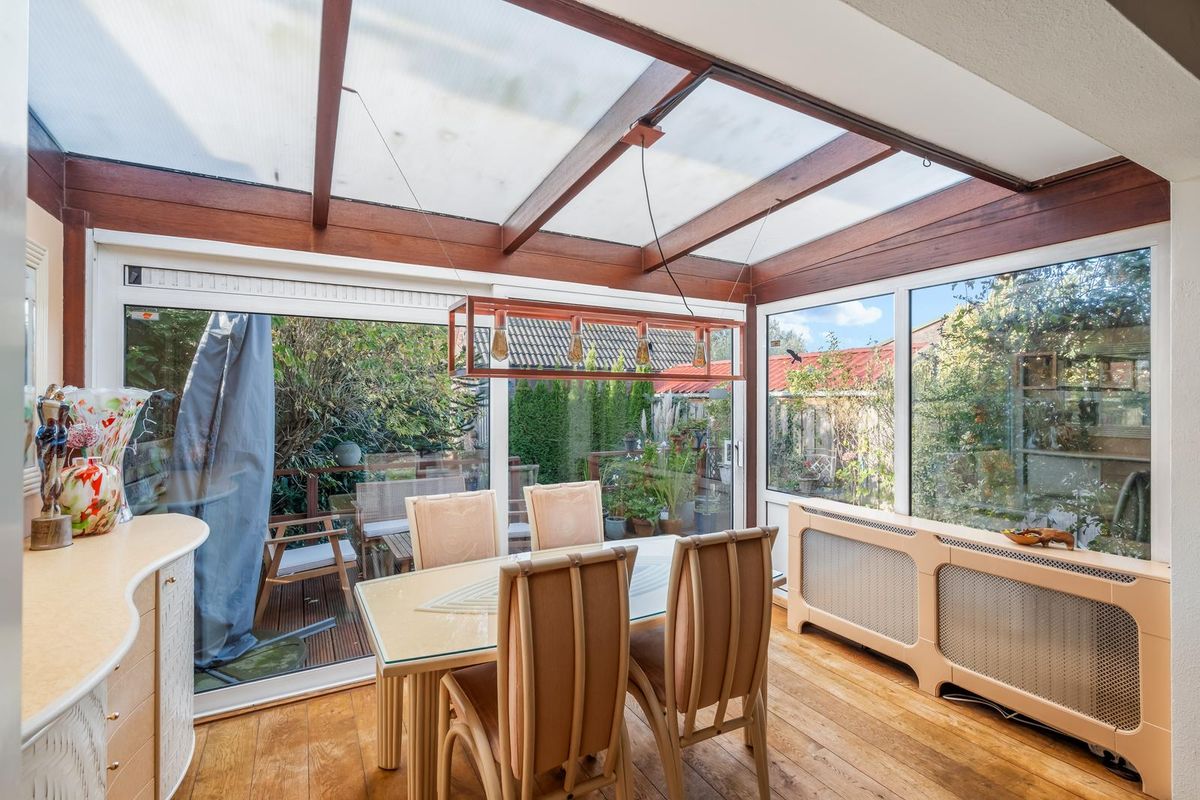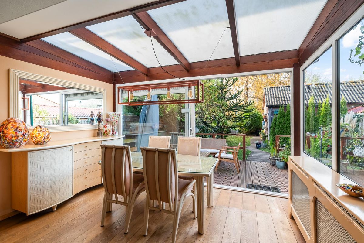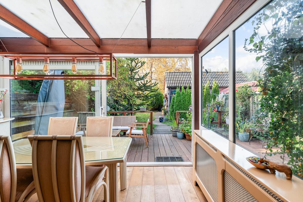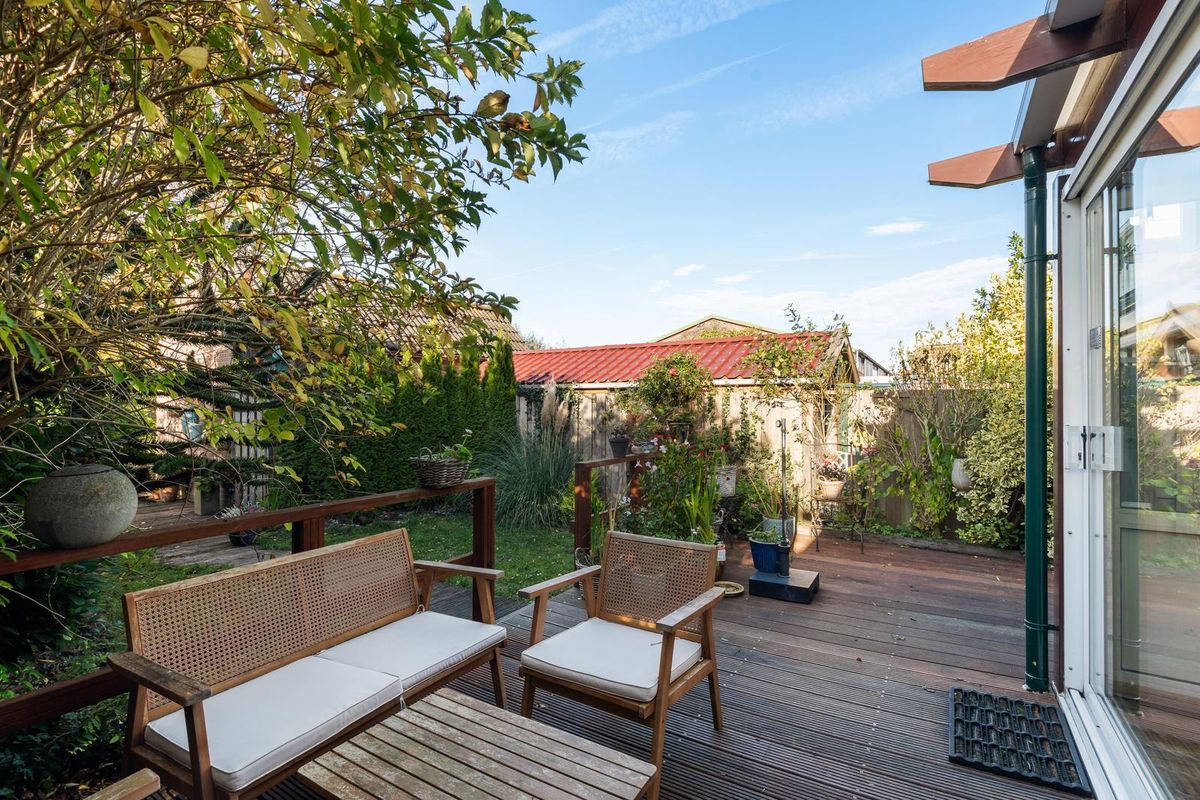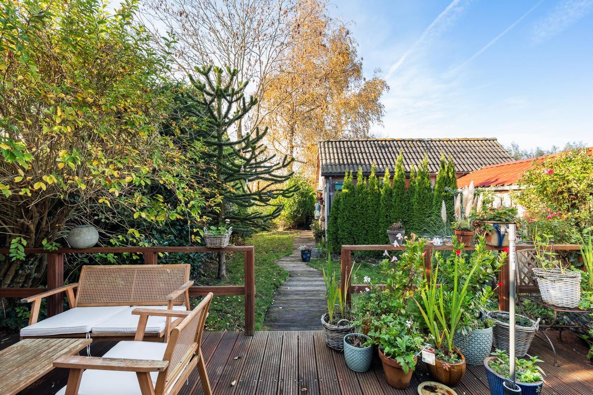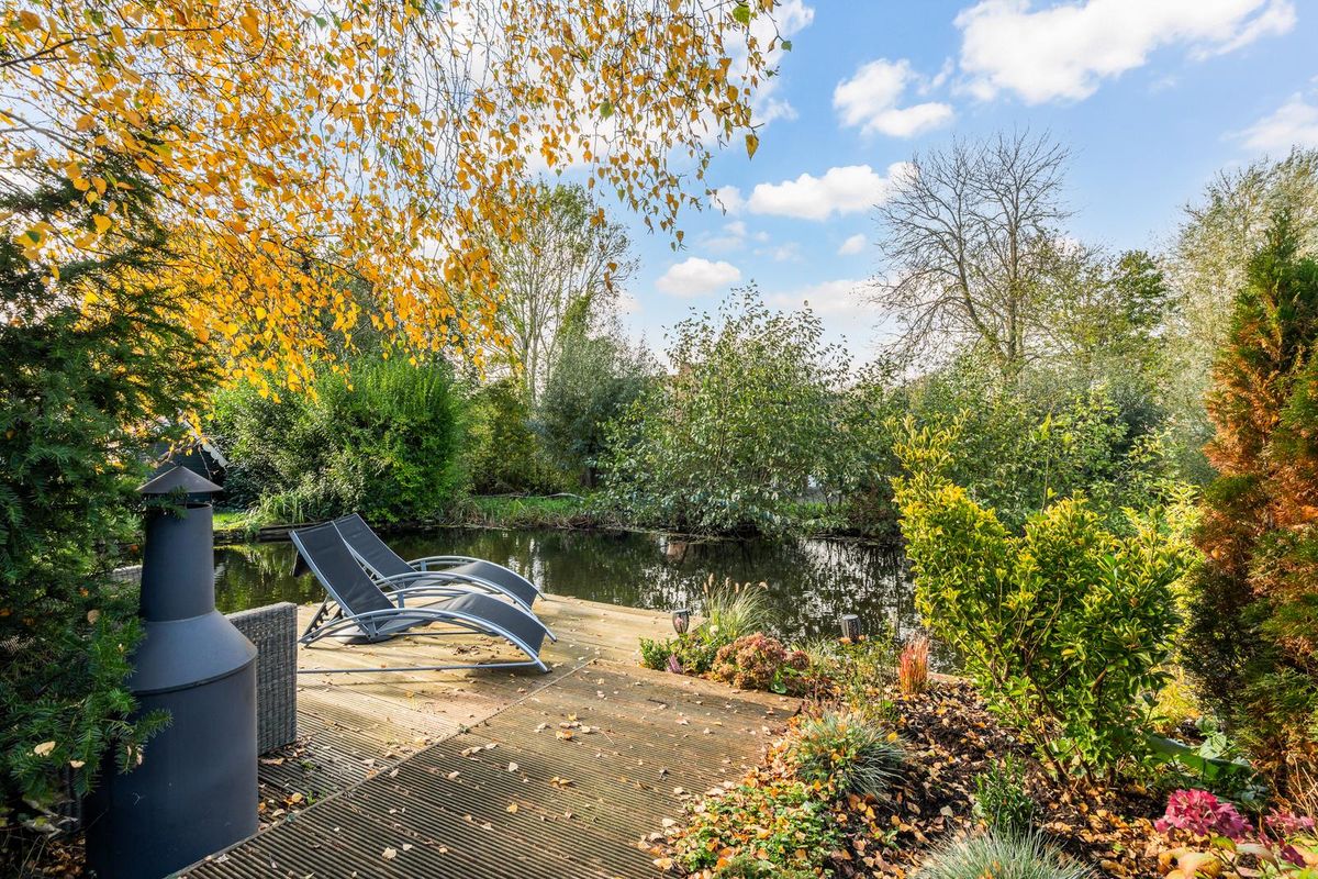 De fraai aangelegde en riante achtertuin is ca. 20 meter diep, is voorzien van vlonderterras en groenborders en grenst aan het water. Wanneer je hier zit te ontspannen in het zonnetje, waan je je midden in de natuur. De tuin heeft twee ingangen via achterom, is voorzien van elektra en een buitenkraan en er is een vrijstaande stenen schuur met pannendak.