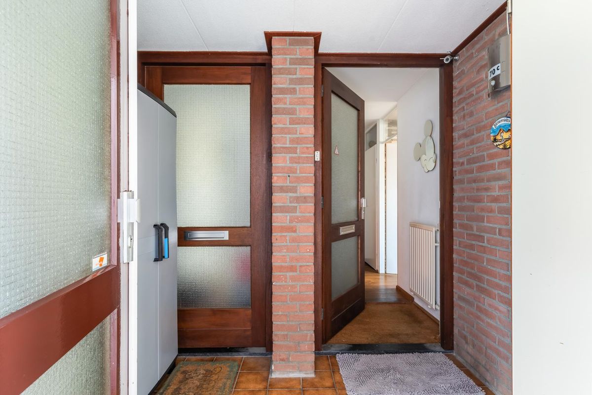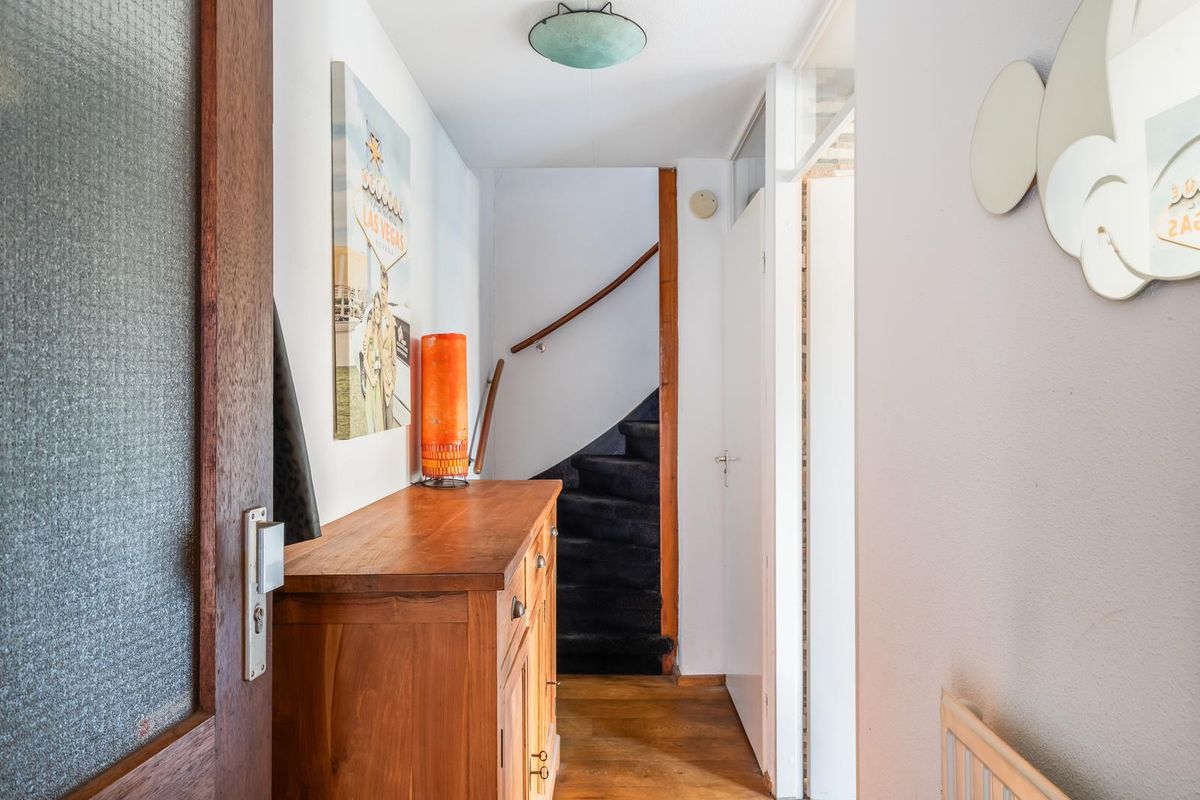 Via de gezamenlijke portiek met de buren bereik je de entree van de woning. De portiek is beveiligd met een alarm en camera’s en de meterkast bevindt zich hier.