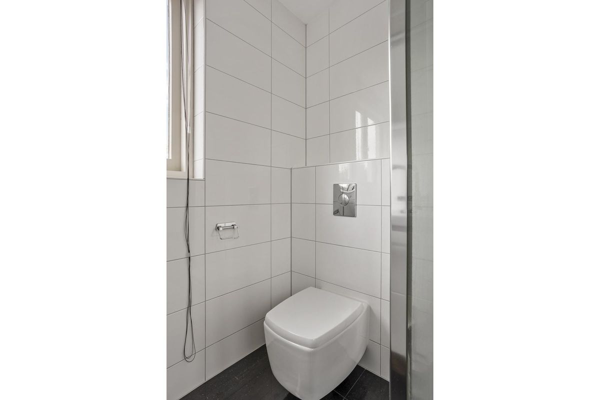 Overloop, twee ruime slaapkamers. De moderne badkamer is uitgerust met een wastafelmeubel, douche en tweede toilet.