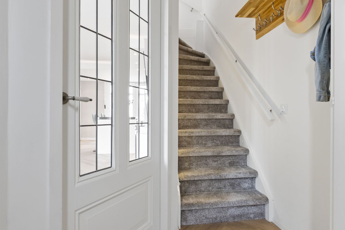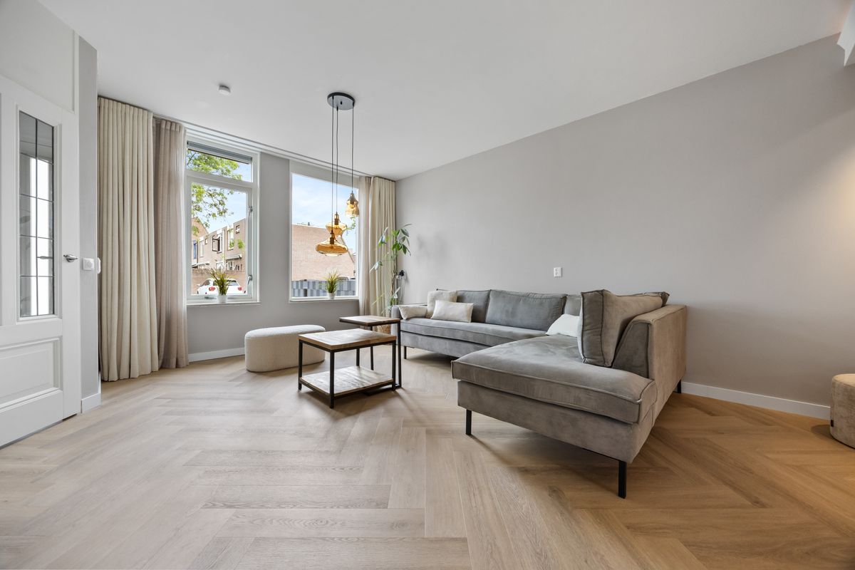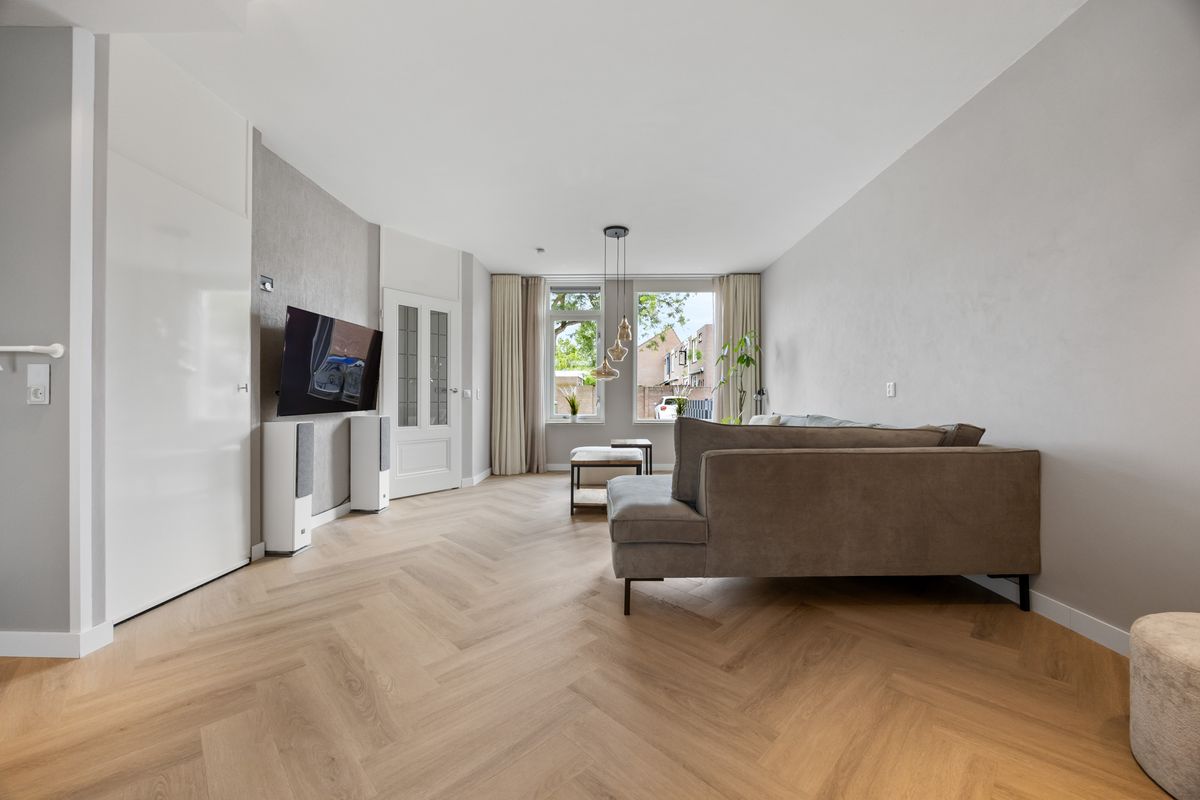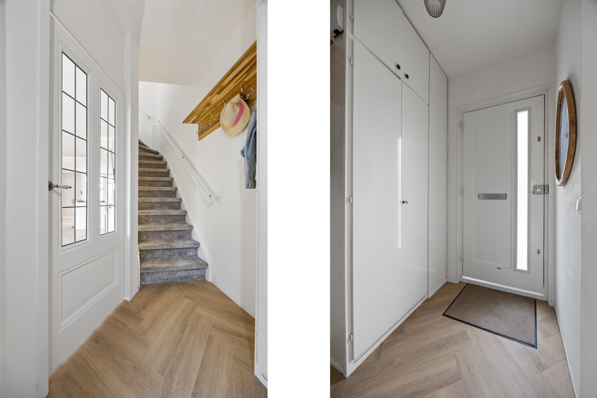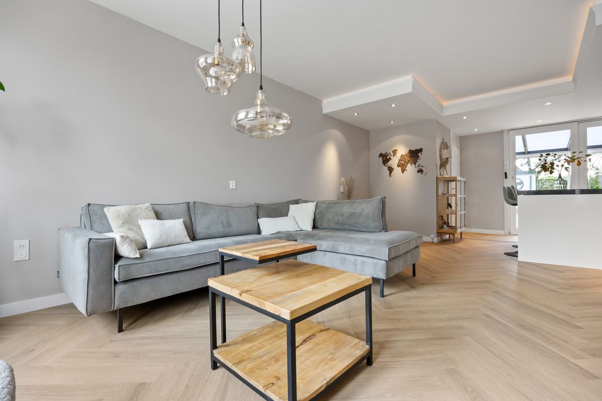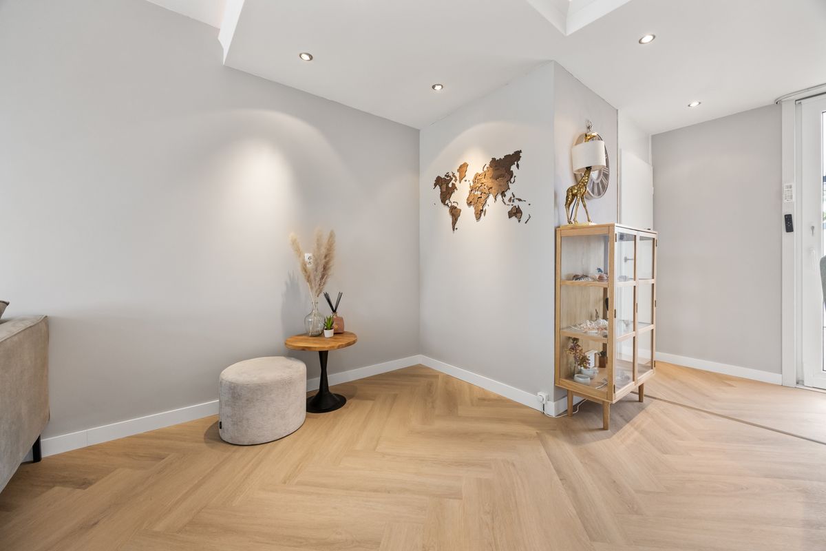 Via de entree komen we de woning binnen en hier vindt je de meterkast en de trapopgang naar de eerste verdieping. De meterkast is in 2018 vervangen toen de 10 zonnepanelen op het dak gelegd werden. Vanuit de entree stap je binnen in de ruime woonkamer. Aan de voorzijde ligt het zitgedeelte met grote raampartijen waardoor er veel licht binnenvalt. De prachtige visgraatvloer met vloerverwarming (2023) loopt door over de gehele begane grond en zorgt voor een moderne uitstraling.
