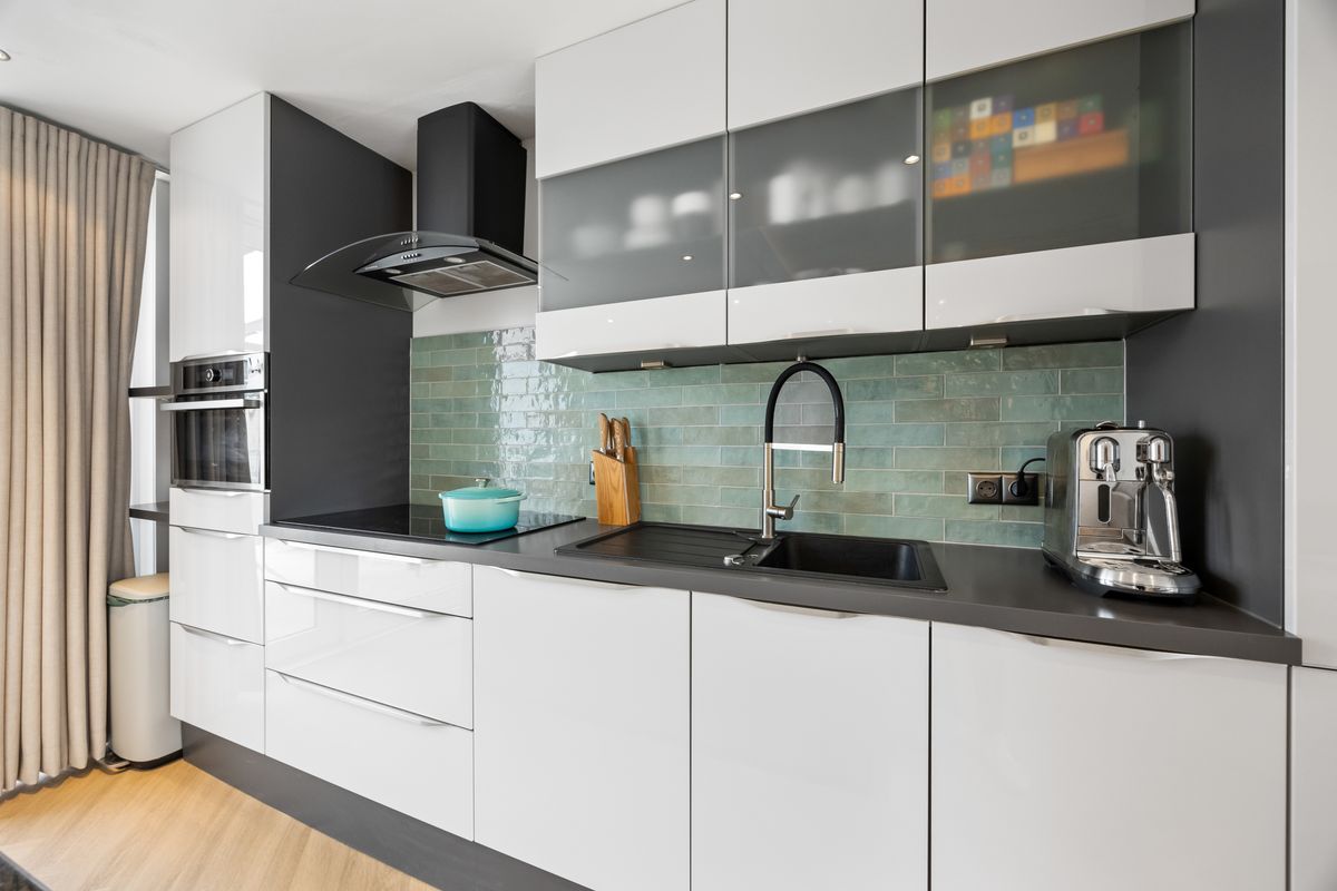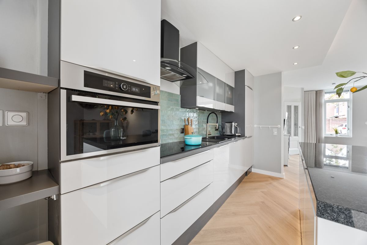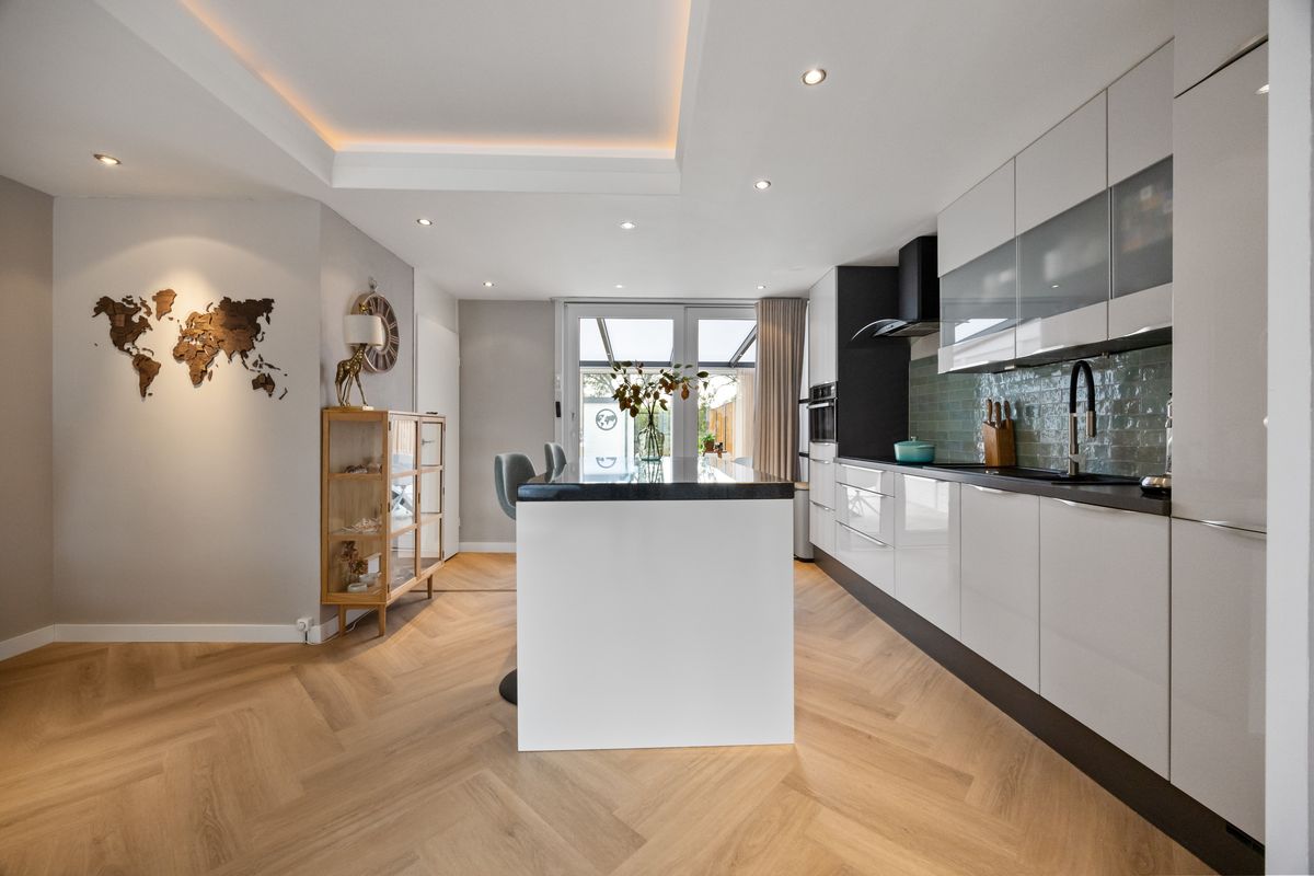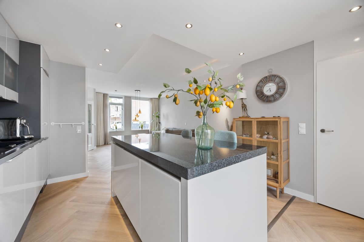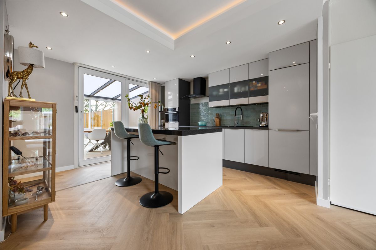 De keuken is het hart van de woning en staat in open verbinding met de woonkamer, waardoor koken en gezellig samenzijn hier naadloos samenkomen. Het strakke kookeiland, geplaatst in 2023 tegelijk met de nieuwe vloer, is een echte blikvanger. De keuken biedt volop werk- én kastruimte, waardoor alles netjes en overzichtelijk blijft. Ze is uitgerust met een vijfpits inductiekookplaat met moderne afzuigkap, een combi-oven, ruime gootsteen, vaatwasser en koel-vriescombinatie. Het kookeiland is voorzien van extra bergruimte en een geïntegreerde vriezer. Het stijlvolle granieten werkblad zorgt voor een luxe uitstraling.