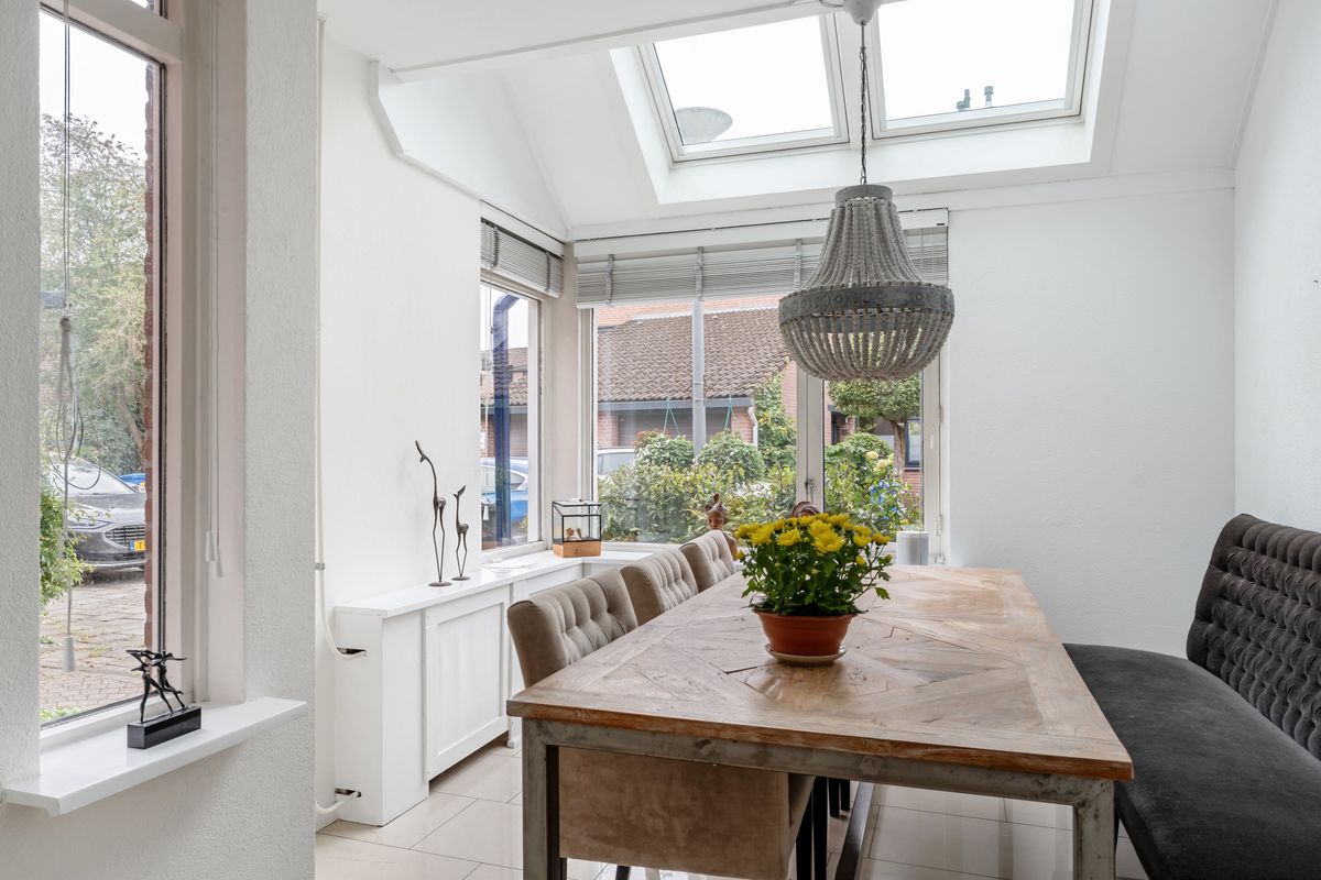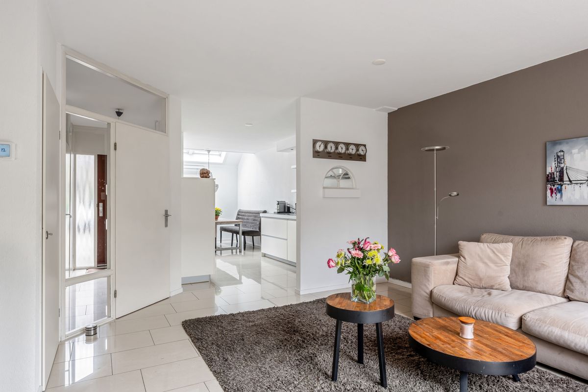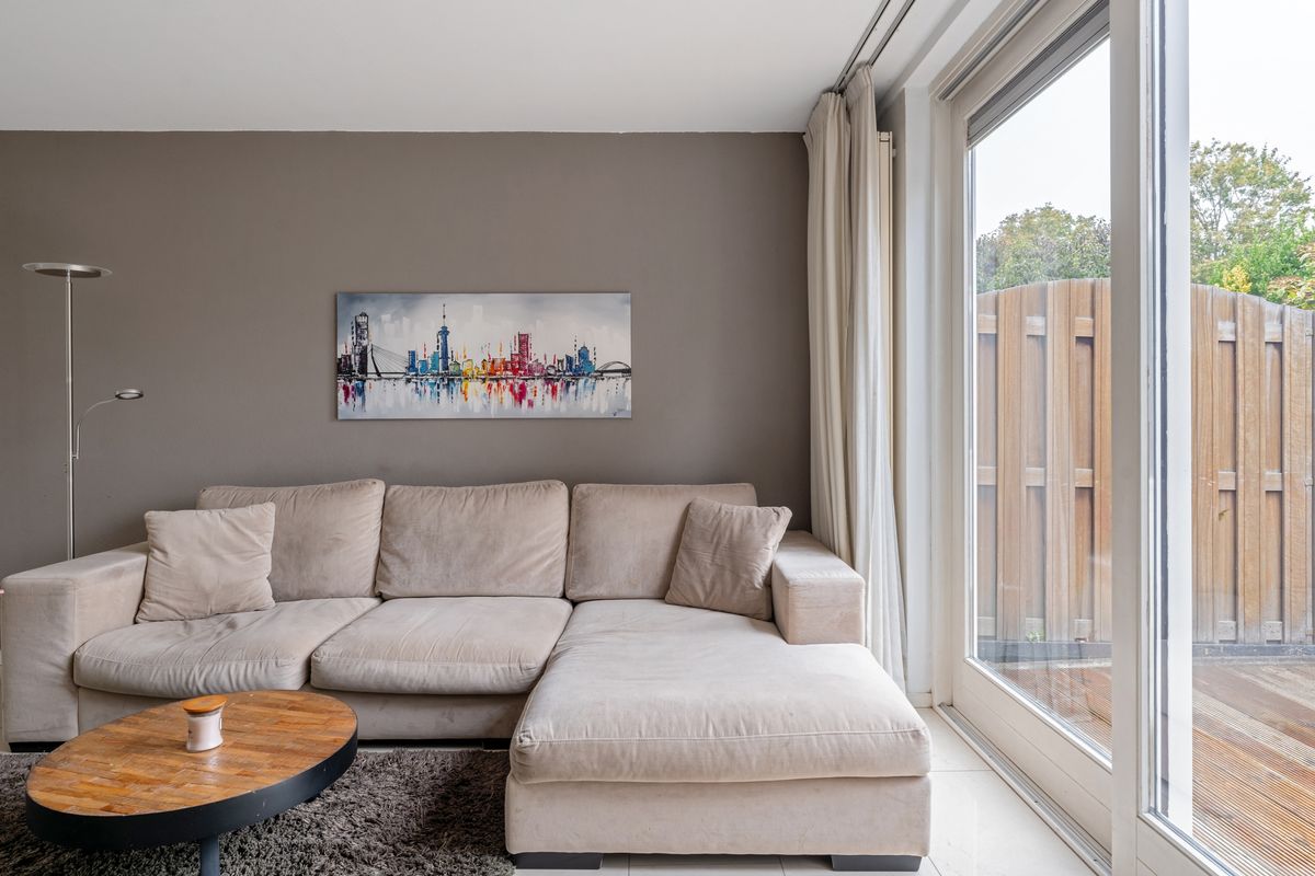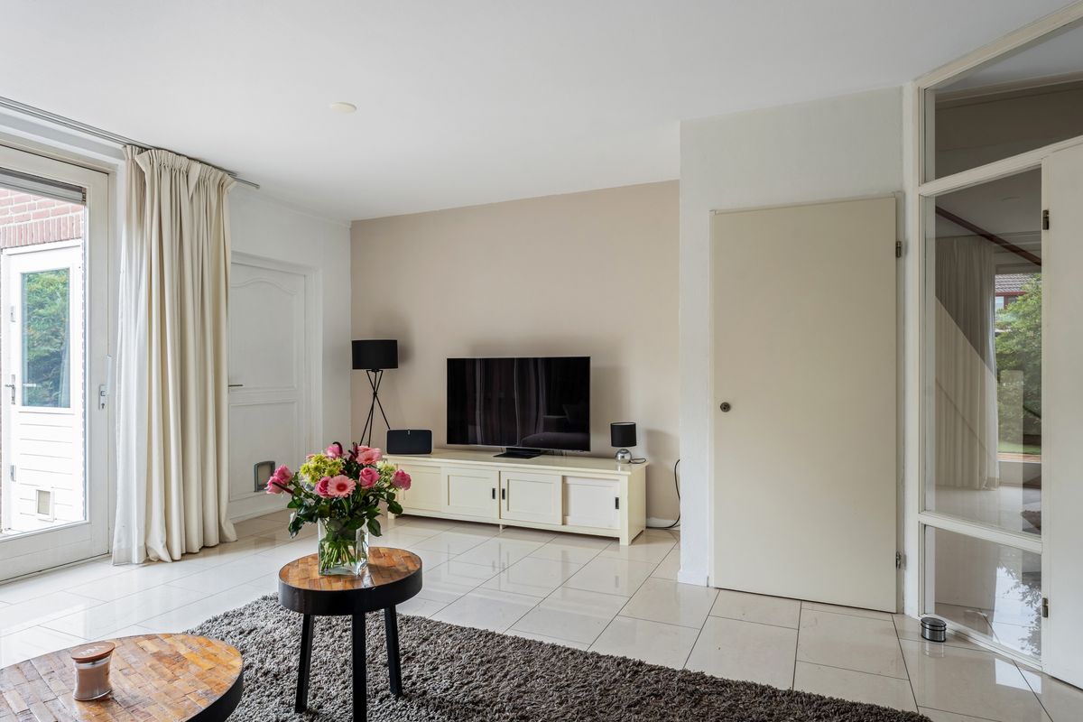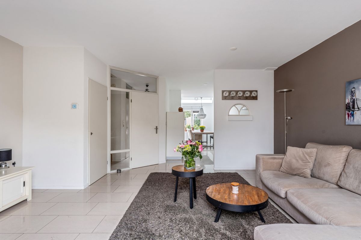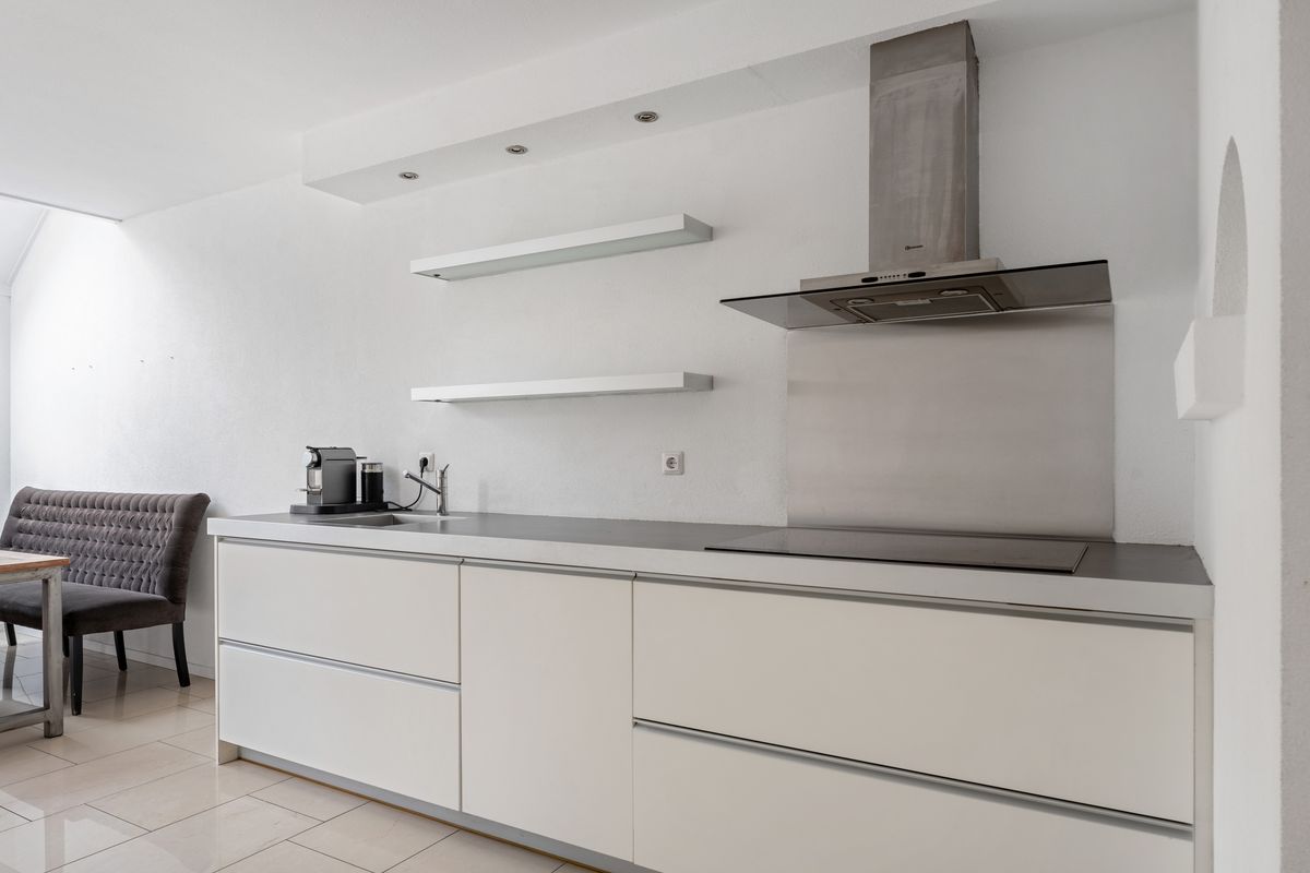 Ruime en lichte living met schuifpui naar zonnige achtertuin. Ruime open keuken met moderne keukenopstelling en grote raampartijen, veel bergruimte en de volgende inbouwapparatuur: 5-pits inductiekookplaat (2023), RvS afzuigschouw, combi magnetronoven, vaatwasser (2021), close-in boiler (2021) en koelkast (2020).