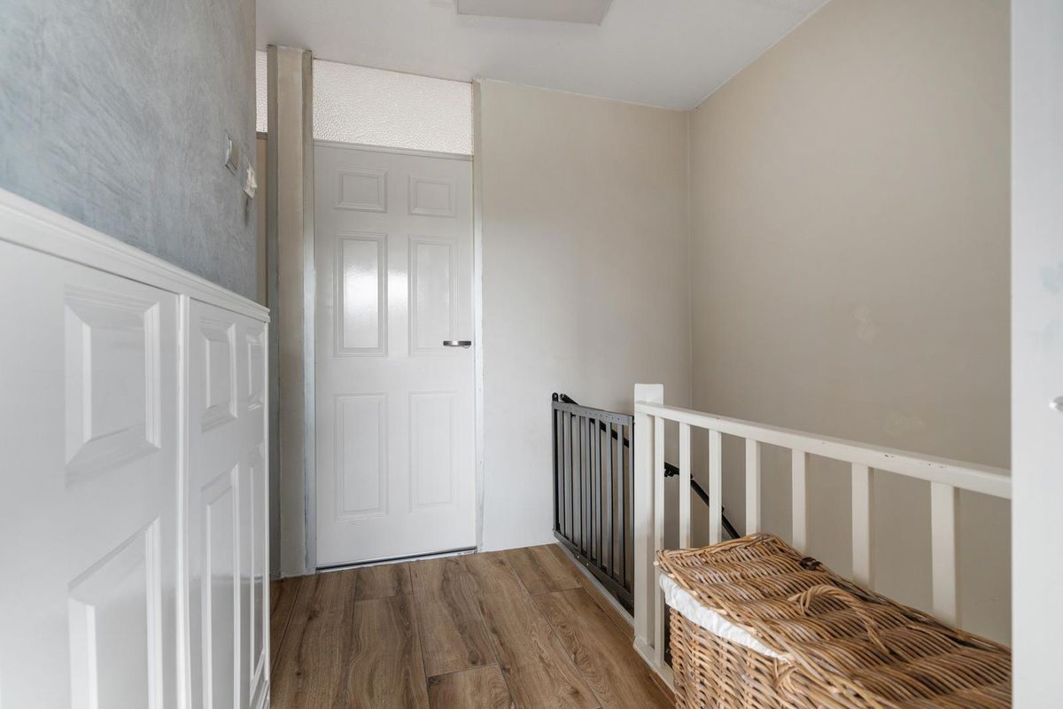 - Overloop: De overloop is netjes afgewerkt met een laminaatvloer en lichte wanden. Vanaf hier zijn de verschillende kamers op de verdieping bereikbaar.