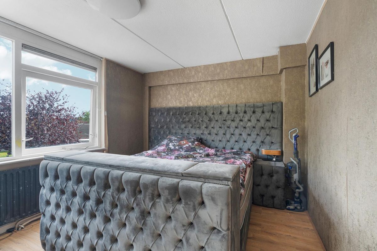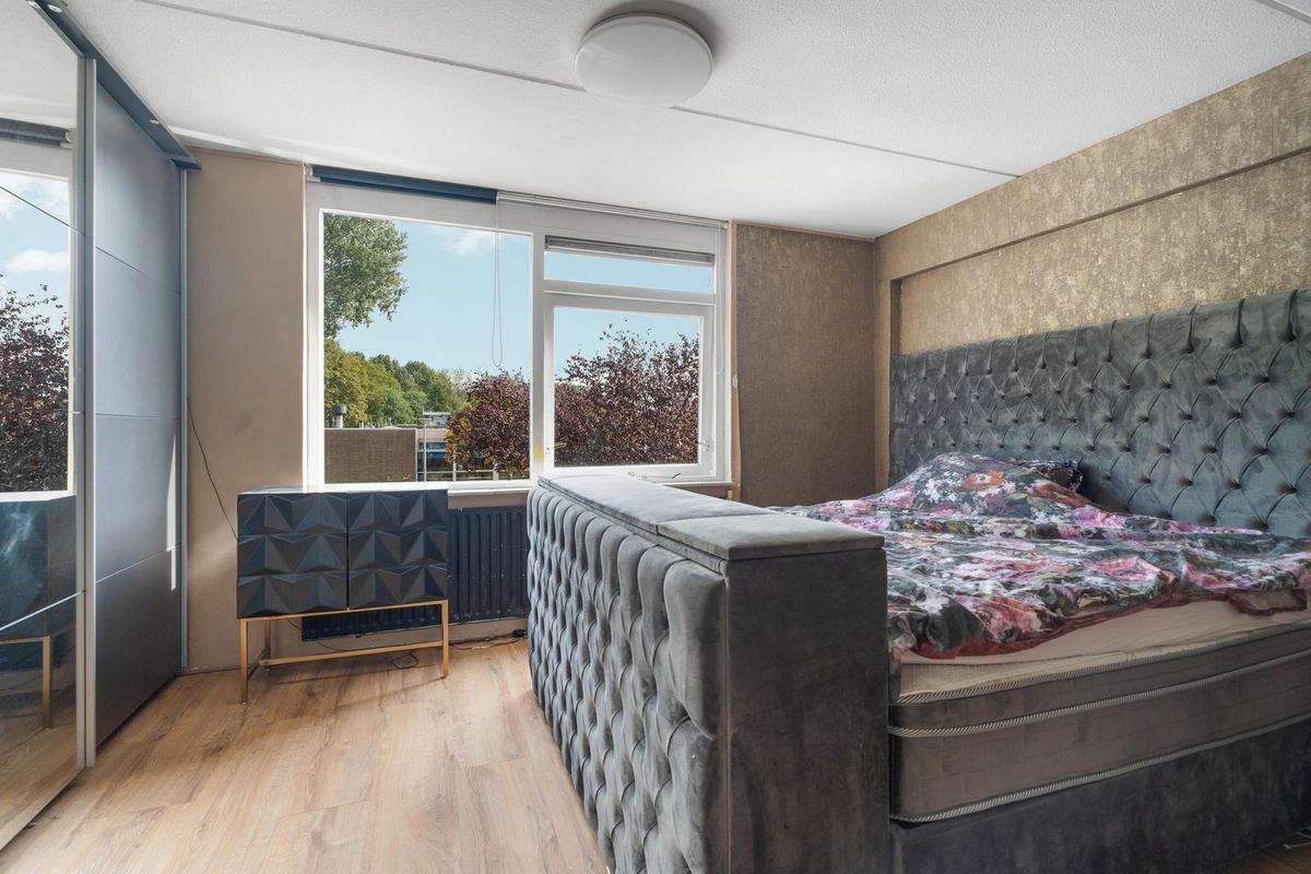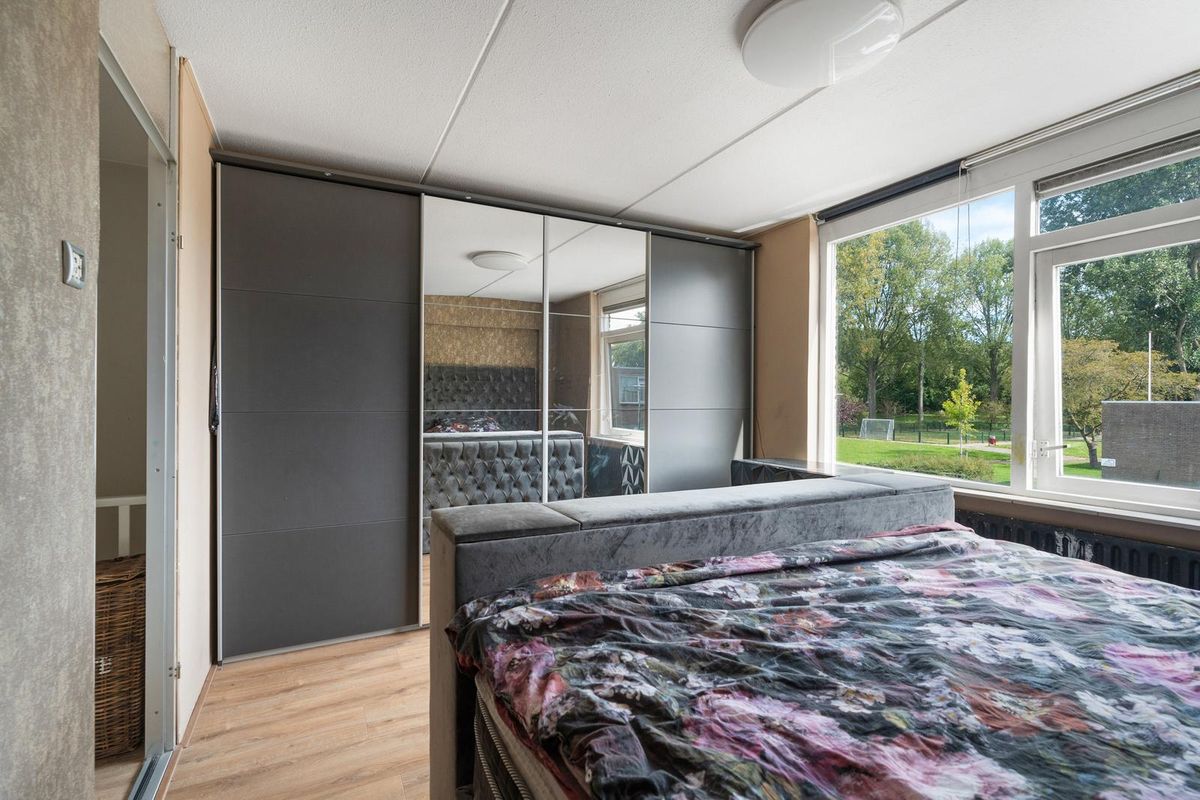 - Slaapkamer I: Gelegen aan de voorzijde bevindt zich een lichte slaapkamer met grote ramen. De ruimte is voorzien van een laminaatvloer en biedt voldoende plek voor een tweepersoonsbed en kastruimte.