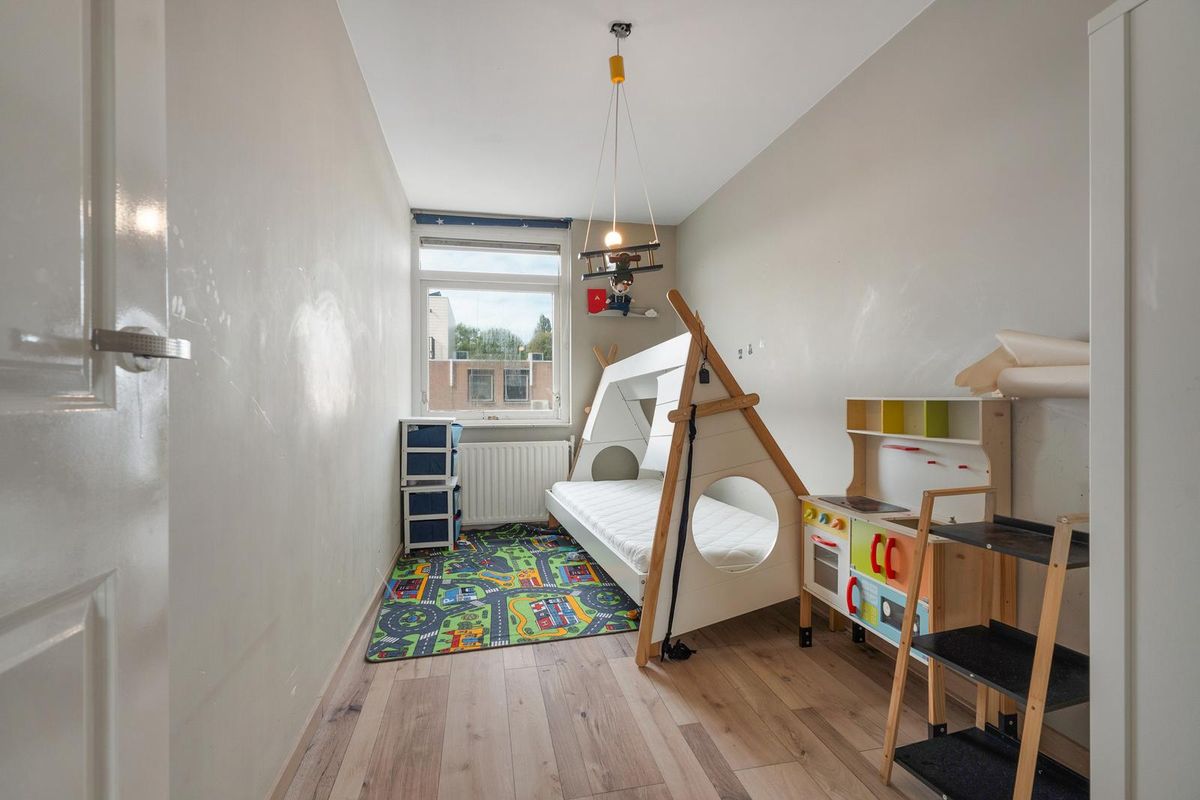 - Slaapkamer III: Gelegen aan de achterzijde ligt een lichte slaapkamer met strakke wandafwerking en een laminaatvloer. Dankzij het raam is er prettig daglicht en de ruimte biedt diverse gebruiksmogelijkheden.