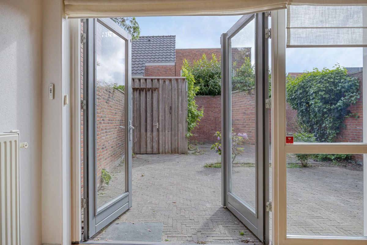 De achtertuin (ca. 52 m²) is verzorgd aangelegd en ligt op het oosten, zodat je volop kunt genieten van de ochtendzon. De tuin is laag in onderhoud en biedt ruimte voor een houten berging, een fietsenstalling en een achterom. Er is een extern watertappunt en elektriciteitspunten, ideaal voor tuingereedschap of het opladen van elektrische apparaten. Met de openslaande deuren vanuit de woonkamer is het gemakkelijk om van binnen naar buiten te stappen. Ook is er een elektrisch zonnescherm voor extra schaduw op warme dagen.